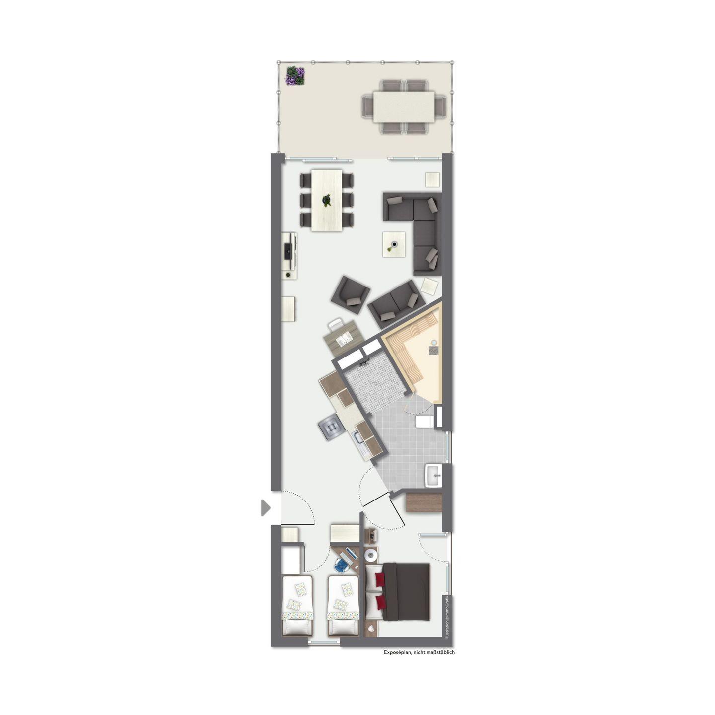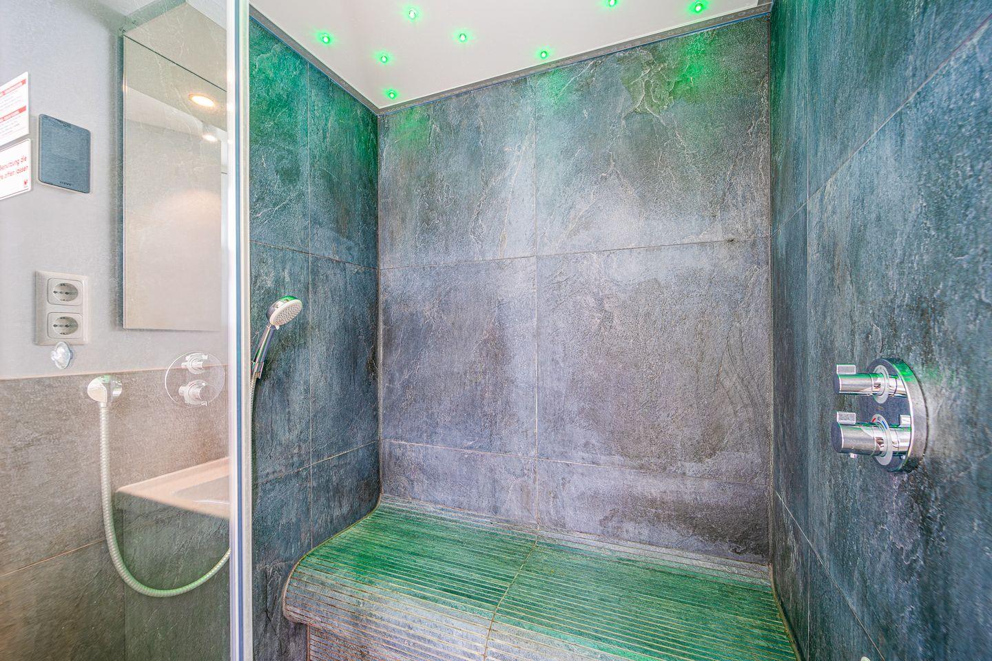 Ein besonderes Highlight ist das luxuriöse Badezimmer, das zu Deinem privaten Wellnessbereich wird: die moderne Badewanne mit wohltuender Whirlpool-Funktion sowie ein Dampfbad mit integrierter Doppelregendusche und die Sauna lassen keine Wünsche offen.