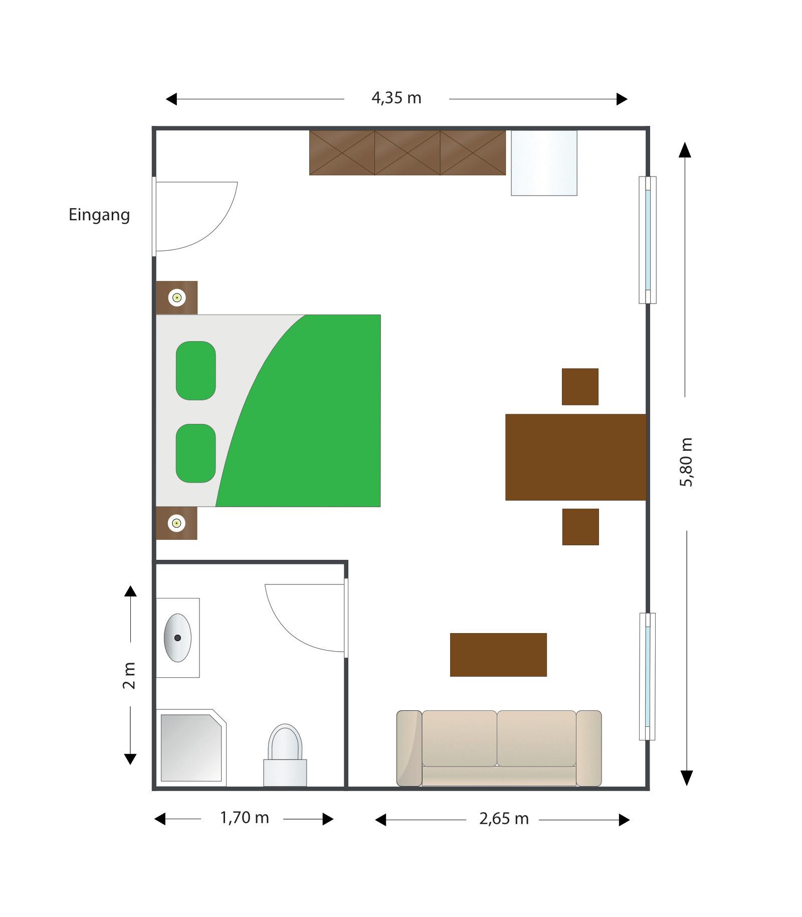 Wichtig! Bitte beachten: Die Unterkunft ist nur mit einem Kühlschrank und einem Wasserkocher ausgestattet.