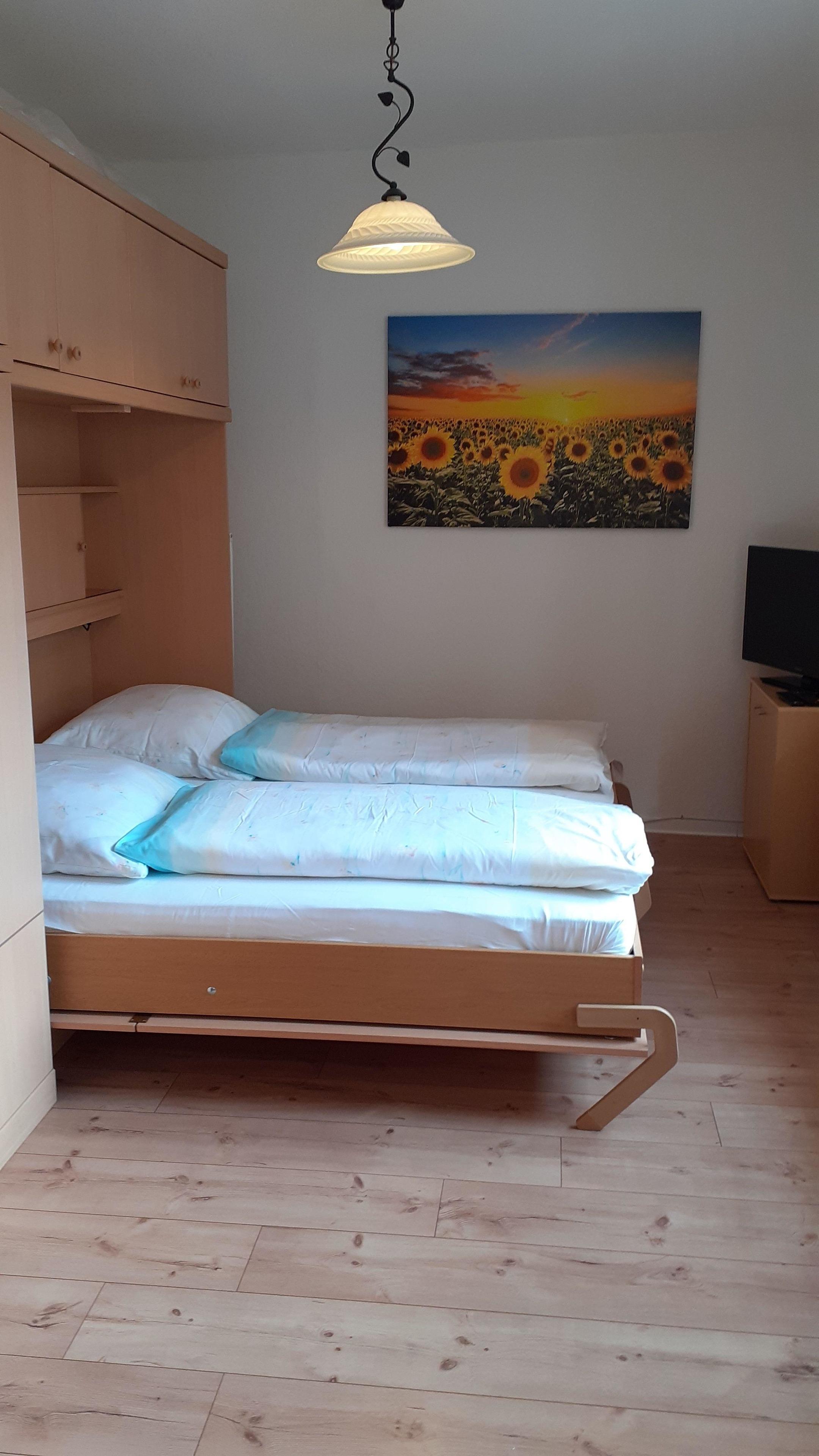 Als Schlafgelegenheit dient ein Doppelschrankbett, ein Babyreisebett kann zugestellt werden.