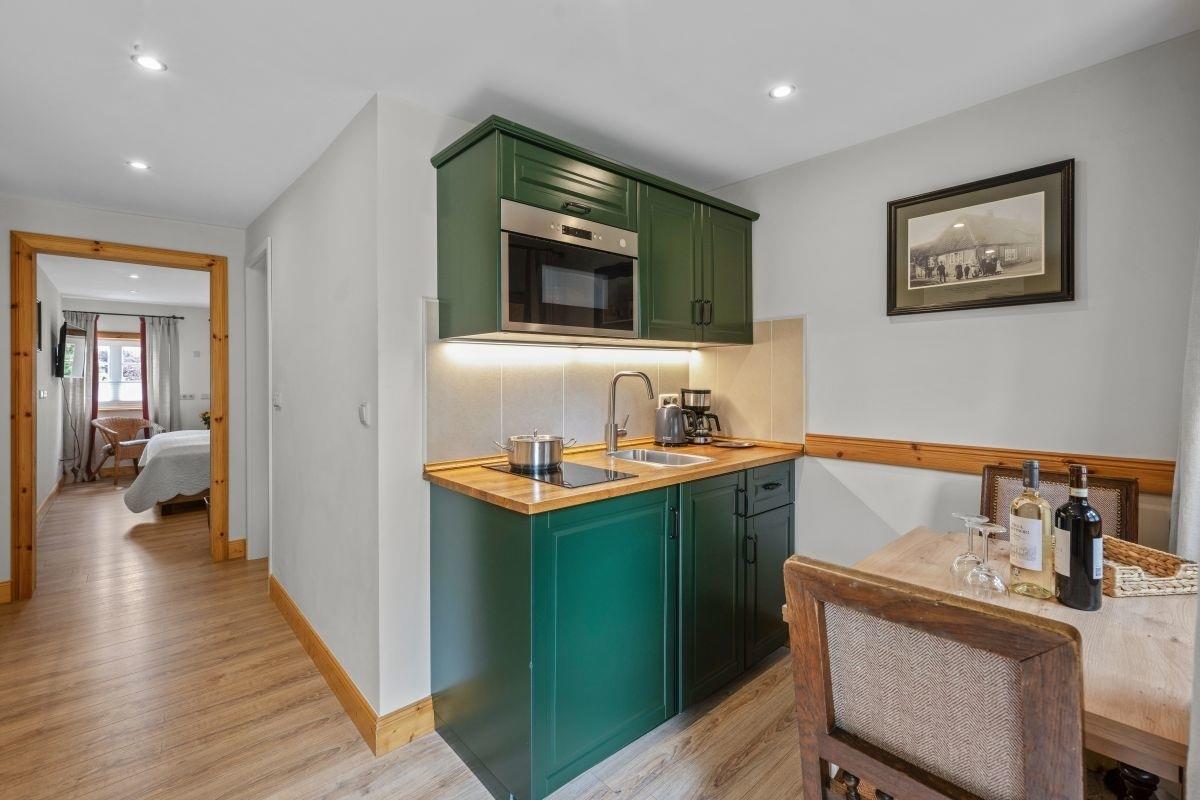 Die Ferienappartements 15c und 15d sind gemütlich eingerichtet und verfügen jeweils über ein Wohn-/Schlafzimmer und eine Einbauküche mit Essbereich. Im Wohn-/Schlafzimmer befindet sich ein großer Schrank und ein Flachbild-TV.