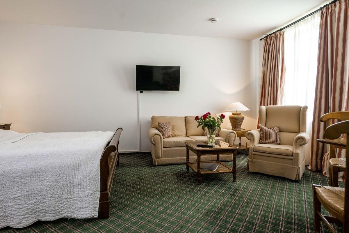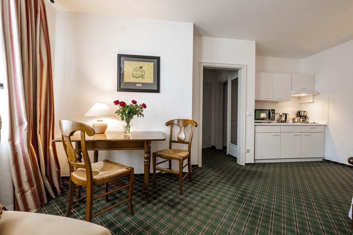 Die Ferienwohnung für 2 Personen befindet sich im Erdgeschoss eines der beiden Kavaliershäuser innerhalb des Ensembles von Schloss Lüdersburg. Sie verfügt über ein Wohn-/Schlafzimmer mit Essbereich und Küchenzeile mit voll ausgestatteter Einbauküche und gemütlichem Tisch für vier Personen.