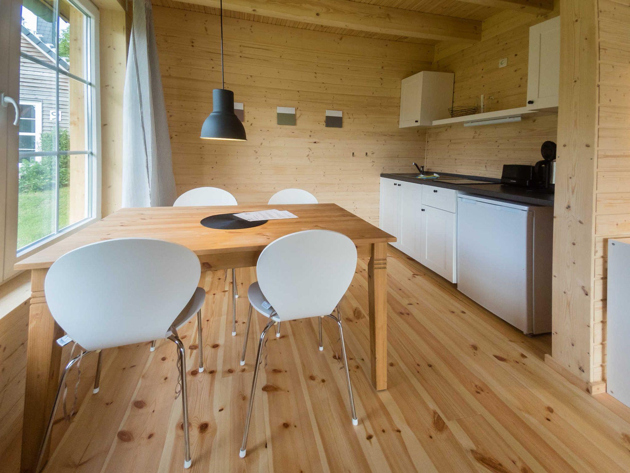 In den Ferienhäusern können Sich sich problemlos selbst versorgen. In jedem Ferienhaus gibt es eine Küchenzeile, Kühlschrank, Kochplatten, Spüle, Kaffeemaschine, genügend Geschirr etc.
