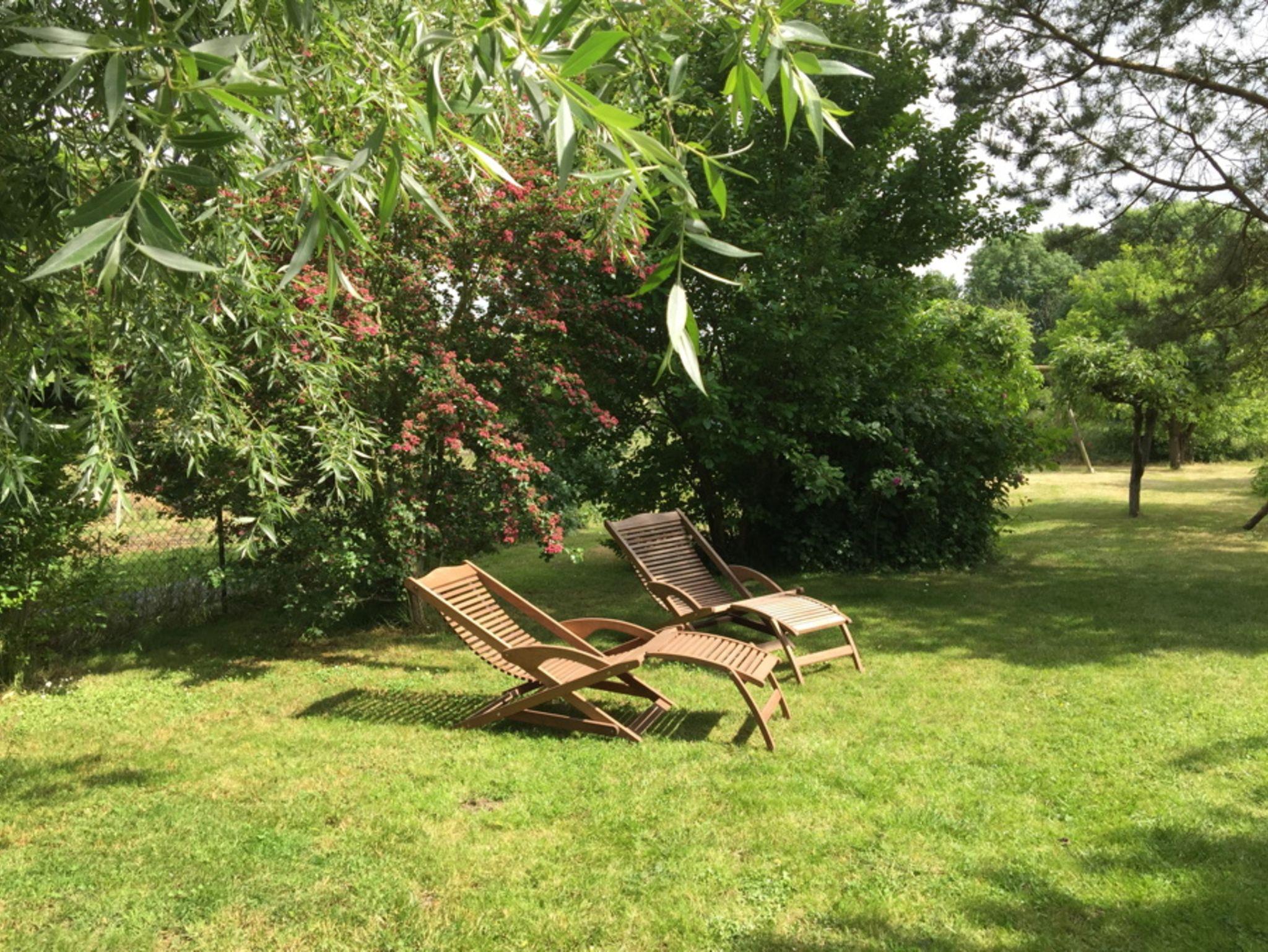 Vor dem Nichtraucherhaus ist ein großer Sitzbereich mit entsprechenden Gartenmöbeln angelegt. Von dort erreicht man den großen naturbelassenen Garten mit altem Baumbestand und vielen Rasenflächen. Im hinteren Teil des vollständig eingefriedeten Grundstücks befinden sich ein PKW-Stellplatz (Carport). Das Ferienhaus ist eine Haushälfte.