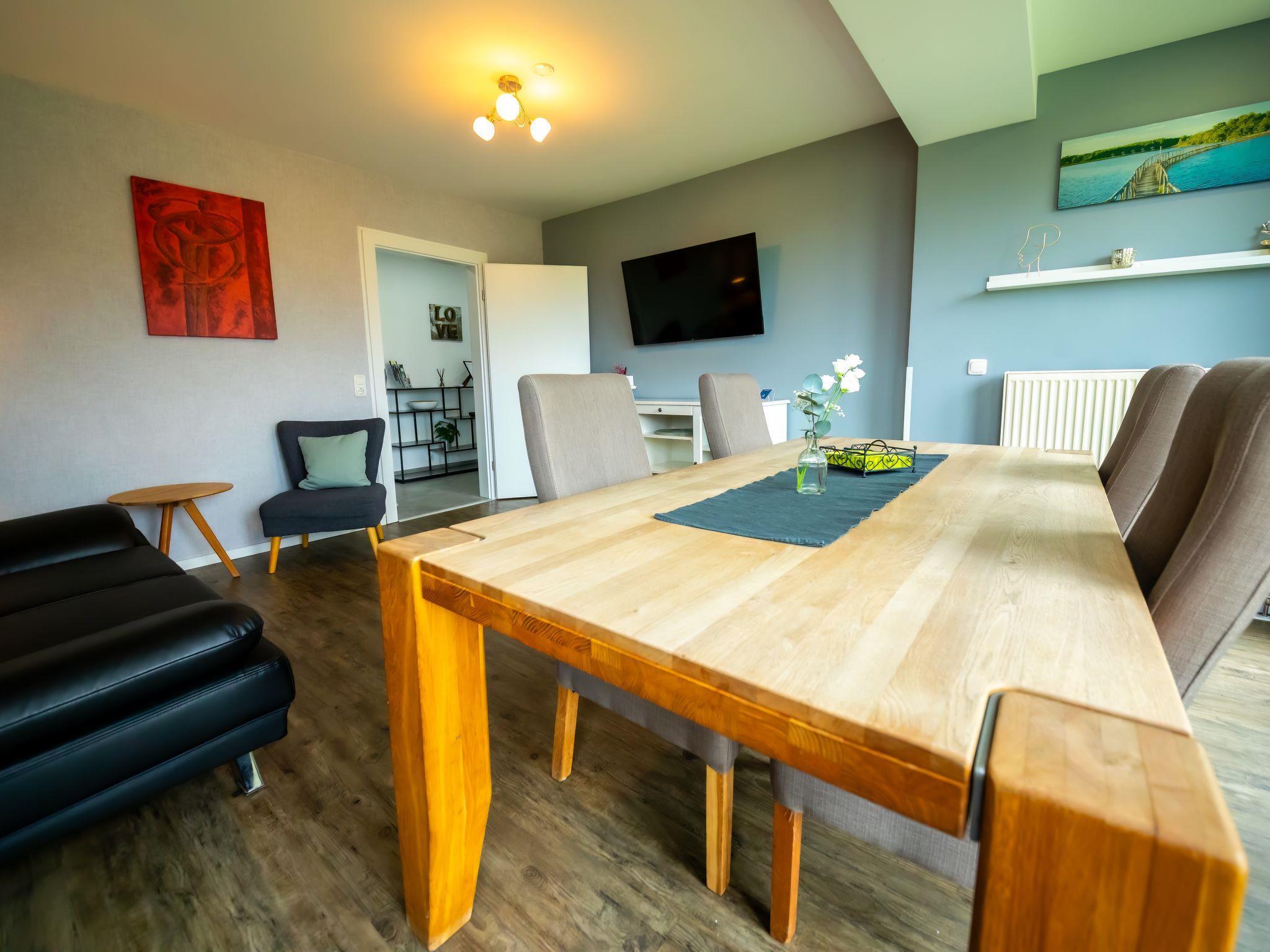 Modern 3-family house semi-detached, surrounded by trees and meadows. Above Lügde (Altstadt), on the outskirts, 800 m from the centre, in a quiet position on a slope, 100 m from the edge of the forest, 8 km from the lake, 1 km from the river, in a cul-de-sac. Stepped path (18 steps) to the house. Parking on the premises. Shop 1 km, grocery 1 km, supermarket 1 km, restaurant 800 m, bakery 1 km, café 800 m, bus stop 300 m, railway station "Lügde" 300 m, outdoor swimming pool 3 km, indoor swimming pool 5 km, thermal baths 5 km, lake Schiedersee 8 km. Golf course (18 hole) 1.5 km, walking paths from the house 200 m. Nearby attractions: Stadtmauer, Wehrtürme, Altstadt Lügde, Schloss Hämelschenburg 12 km, Externsteine Bad Meinberg 30 km, Hermannsdenkmal 40 km. Please note: car recommended.