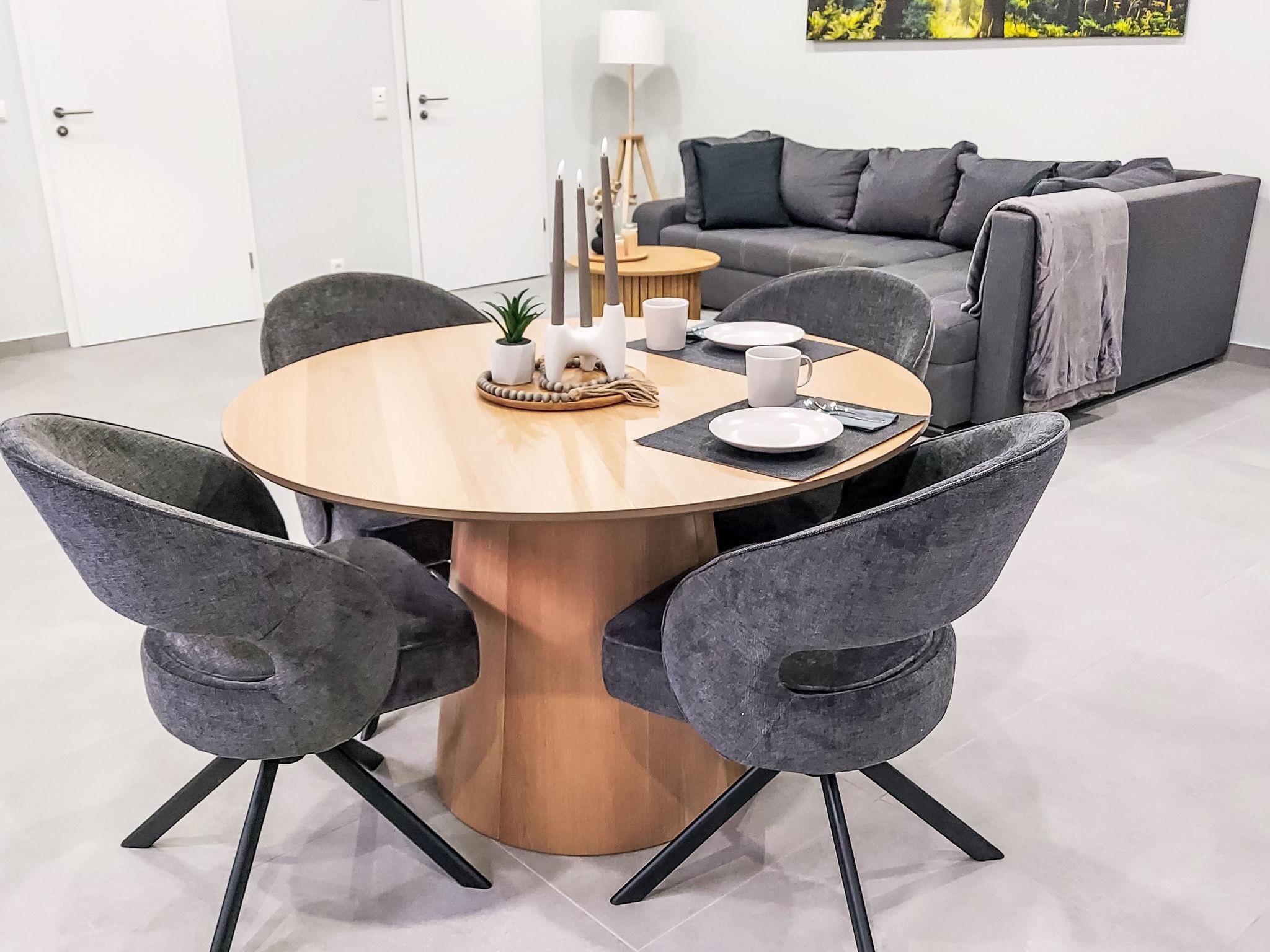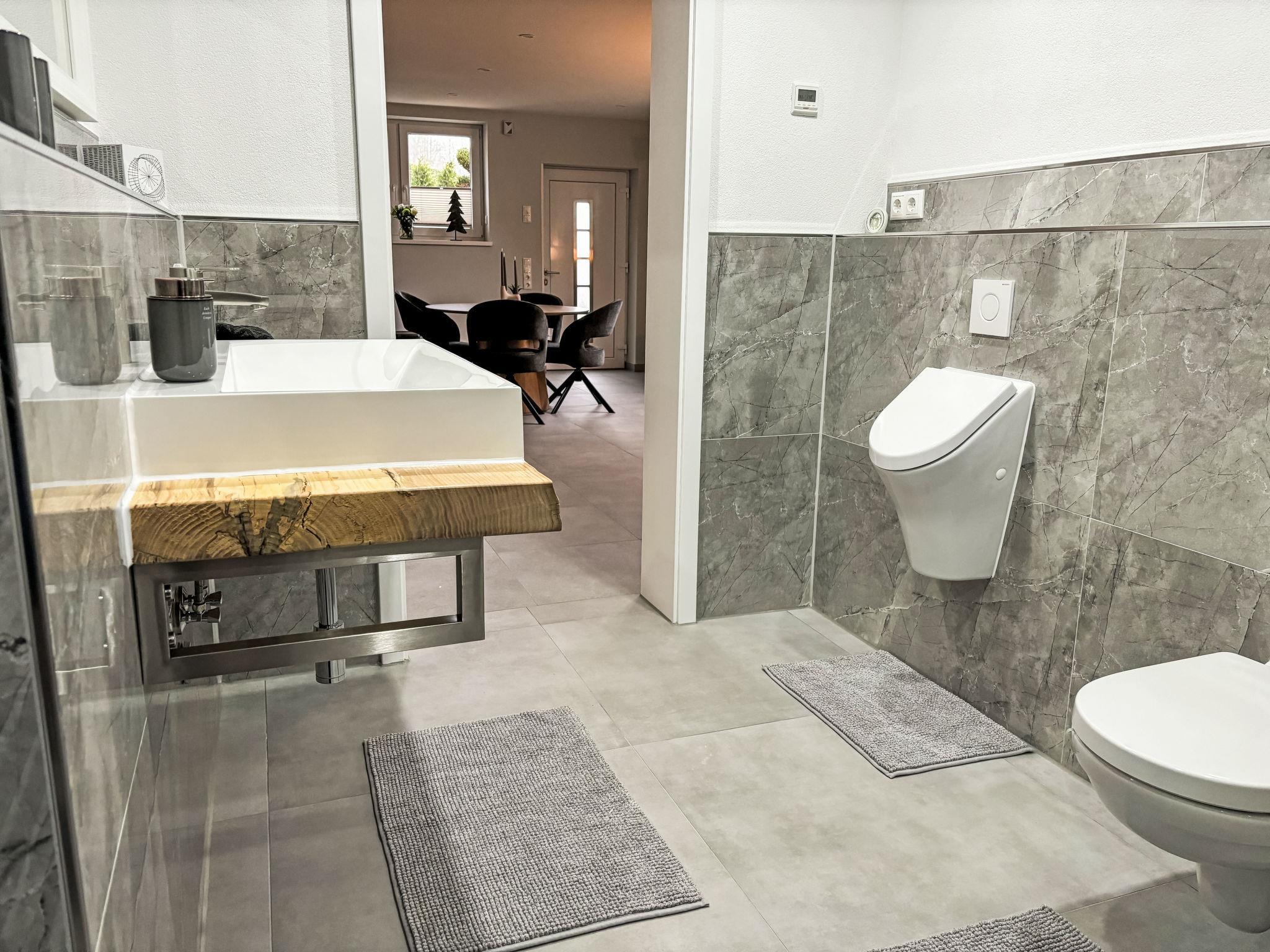 "Am Waldrand", 2-room apartment 50 m2, lower ground floor. Fully renovated in 2024, modern and tasteful furnishings: living/dining room with dining table and cable TV (flat screen). Exit to the terrace. 1 room with 1 double bed (180 cm, length 200 cm), cable TV (flat screen). Open kitchen (oven, dishwasher, 4 ceramic glass hob hotplates, toaster, kettle, freezer, electric coffee machine). Shower/WC. Oil heating, underfloor heating. Terrace 20 m2. Terrace furniture, barbecue. Facilities: washing machine, dryer. Internet (WiFi, free). Please note: non-smokers only. Maximum 1 pet/ dog allowed. Private entrance, smoke alarm.