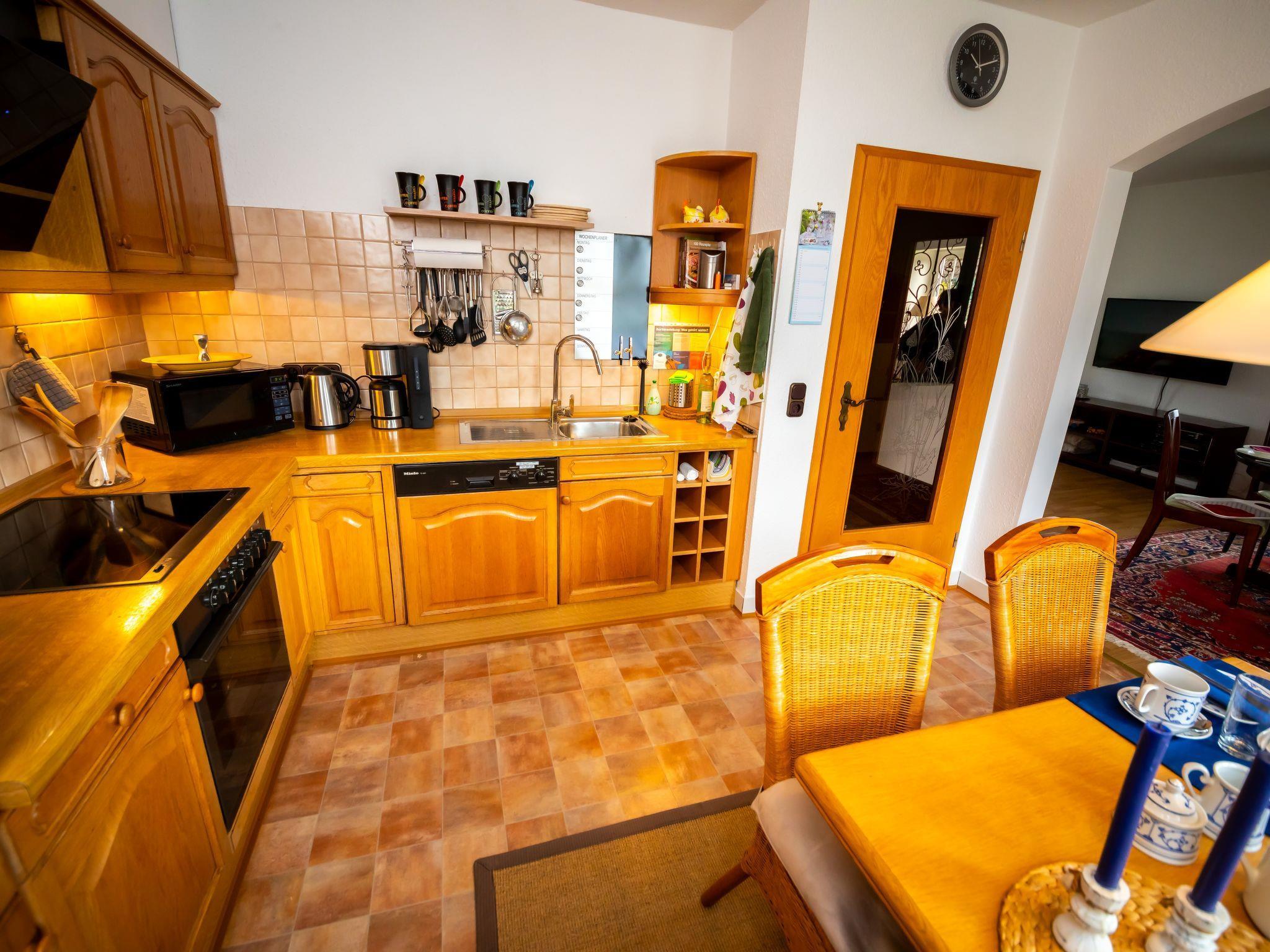 3-room semi-detached house 110 m2 on 2 levels, on the ground floor. Tasteful and cosy furnishings: living room 30 m2 with cable TV (flat screen), hi-fi system and DVD. Kitchen 13 m2 (oven, dishwasher, 4 ceramic glass hob hotplates, microwave, electric coffee machine) with dining nook. Bath/shower/bidet/WC. Upper floor: 1 room 16 m2, with sloping ceilings with 1 double bed (180 cm, length 200 cm), cable TV (flat screen). 1 room 14 m2, with sloping ceilings with 1 double bed (180 cm, length 200 cm). Gallery with satellite TV. Sep. WC. Terrace 20 m2. Terrace furniture, barbecue (portable). Beautiful view of the countryside and the city. Facilities: children's high chair, hair dryer. Internet (WiFi, free). Please note: non-smoking house. Smoke alarm, fire extinguisher.