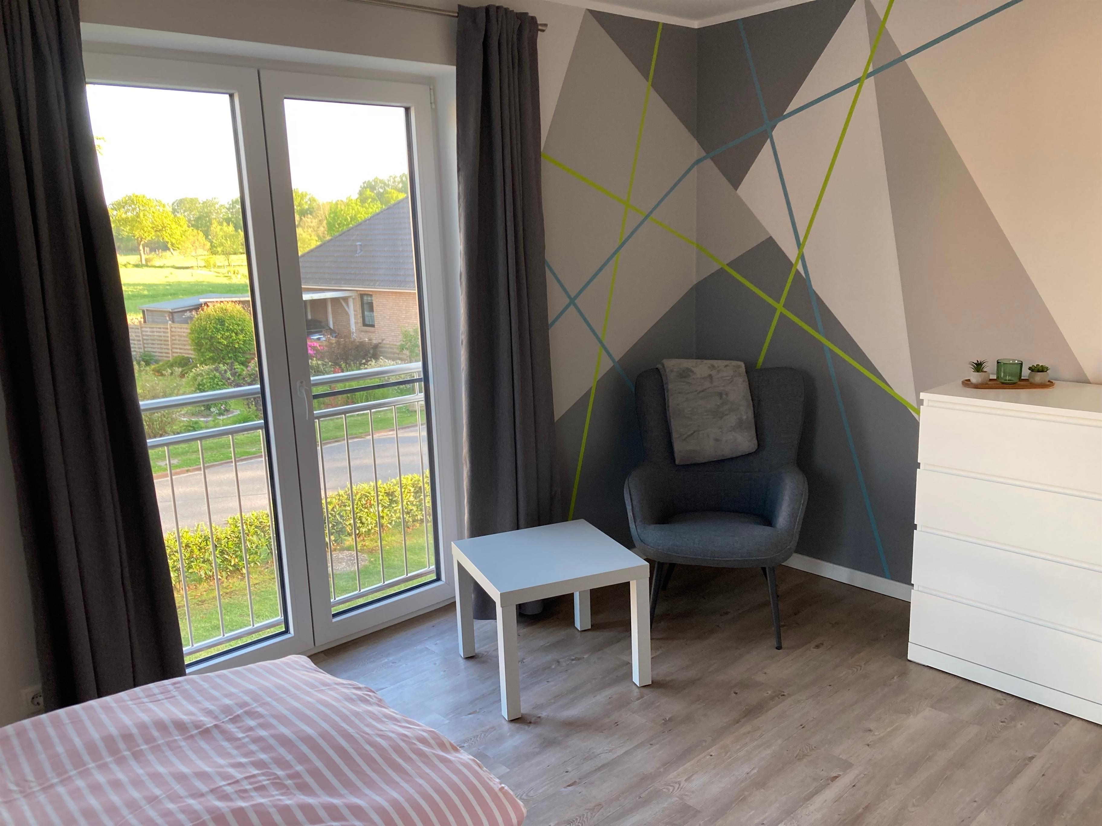 Ferienwohnung Hansen in Lürschau – Die 100 qm große, modern eingerichtete Ferienwohnung im Obergeschoss eines Einfamilienhauses bietet einen großzügigen Wohn-Essbereich, zwei Schlafräume sowie ein großes Bad. Dank der stadtnahen Lage und der Nähe zu Wald, See und Sehenswürdigkeiten ist sie ideal für einen erholsamen und abwechslungsreichen Urlaub.