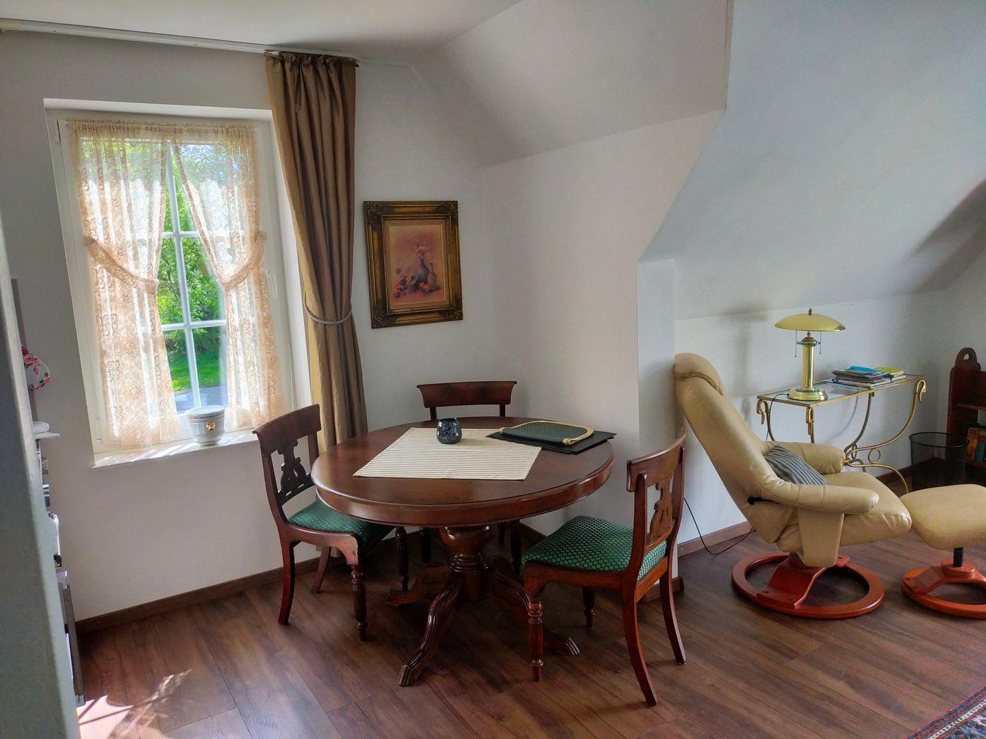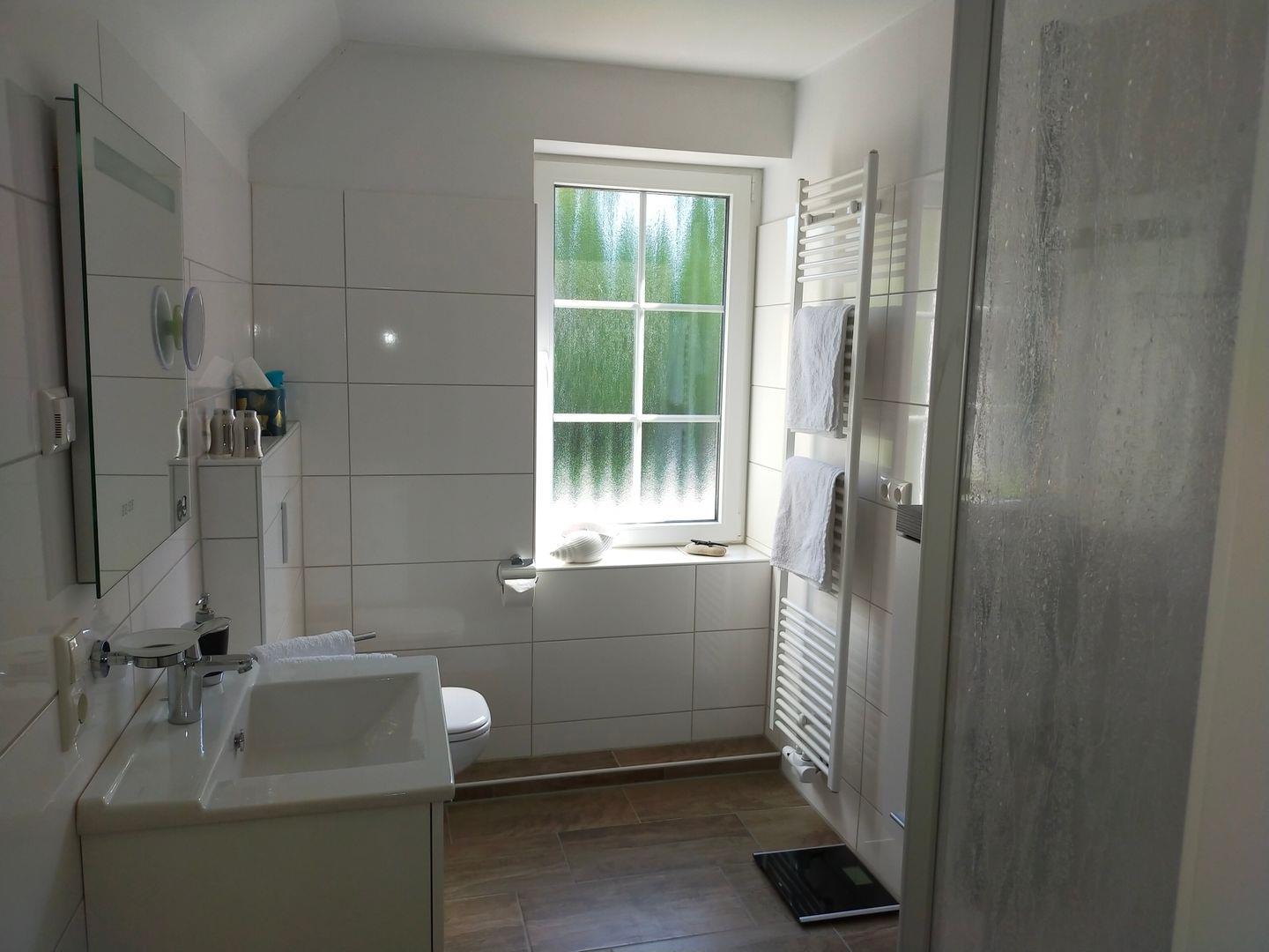 Herzlich Willkommen in der Ferienwohnung Johanna in der Ortschaft Lütetsburg. Über einen separaten Eingang kommen Sie in die helle Oberwohnung. Der gemütliche Wohnbereich versprüht durch seine Ausstattung einen besonderen Charme. Auf der bequemen Couch können Sie sich durch die kleine Bibliothek schmökern oder sich spannende Filme am Flachbild-TV anschauen. In der neuwertigen Küche kann sich der Hobbykoch austoben und ostfriesische Speisen zubereiten, die er dann am runden Esstisch servieren kann. Ein separates Schlafzimmer mit Doppelbett (mit hochwertigen Daunendecken) steht zum Träumen und Erholen bereit. Bettwäsche und Handtücher sind inklusive. Nebenan befindet sich das helle moderne Bad mit ebenerdiger Dusche. Die ganze Wohnung ist mit Fußbodenheizung ausgestattet. Das Highlight ist die am Wohnraum angrenzende Dachterrasse, wo Sie morgens das Frühstück, mittags die Sonnenstrahlen und einen schönen Grillabend genießen können. WLAN ist verfügbar! Einen Parkplatz finden Sie am Haus. Falls Sie einen Urlaub mit Freunden planen, können Sie die Wohnung Julia (Nr. 399572), die sich ebenfalls im Haus befindet, dazu buchen.