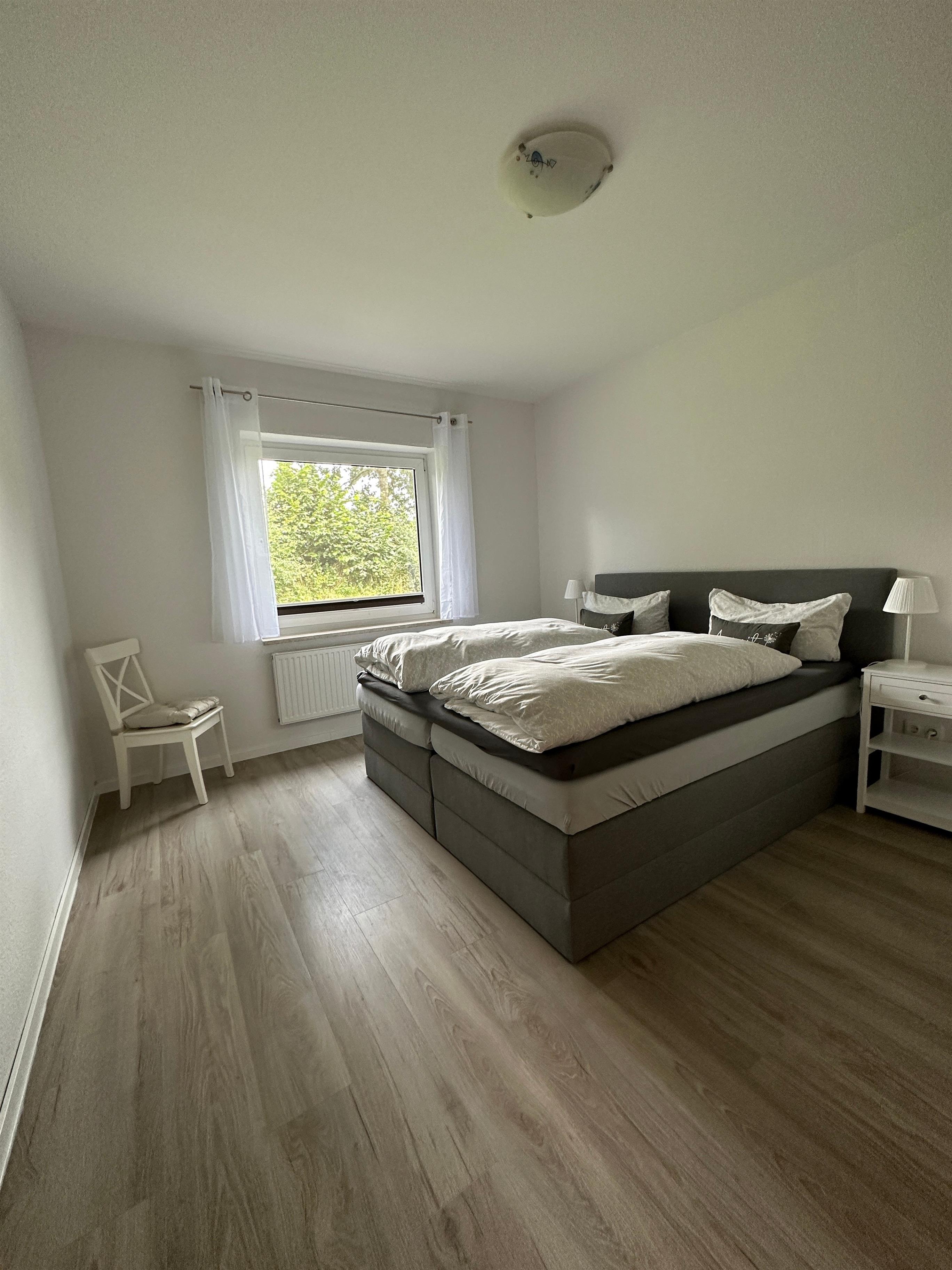 Die Ferienwohnung verfügt über zwei Schlafzimmer mit insgesamt 3 Betten, ein Bad mit Dusche und WC, ein Wohnzimmer, eine kleine Küche und ein komplett eingezäunten Garten mit Terrasse ideal für einen Urlaub mit Hund.