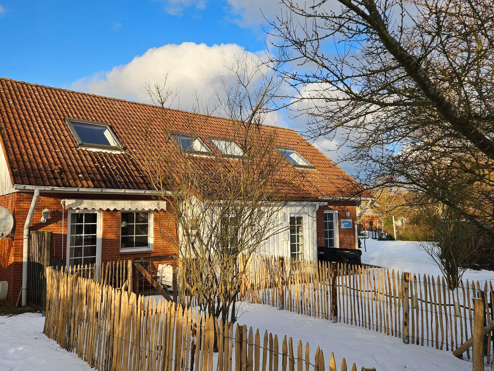 Lütow, ein kleiner verschlafener Ort, liegt im Süden der Halbinsel Gnitz direkt am Achterwasser, das hier vollständig von einem breiten Schilfgürtel gesäumt ist. In unmittelbarer Umgebung befindet sich das Naturschutzgebiet Südspitze Gnitz, ein Moränenkliff und dazugehöriges Strandwallsystem mit Erlenbruchwäldern und Weiderasen. Dort finden sich zahlreiche Spuren des hier heimischen größten europäischen Nagetiers, des Bibers, was uns zur Namensgebung unseres Ferienhauses inspiriert hat.