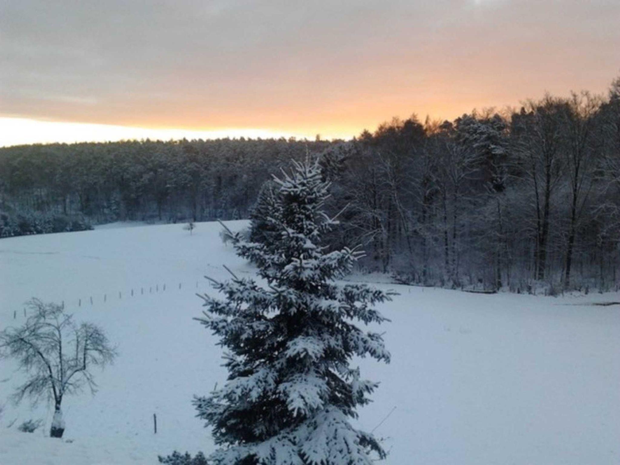Direkt vor der Ferienwohnung ist eine Veranda mit Grill und gemütlicher Sitzgruppe. Von hier aus kann man schon mal Rehe am Waldrand oder Fledermäuse bei ihren abendlichen Runden beobachten.