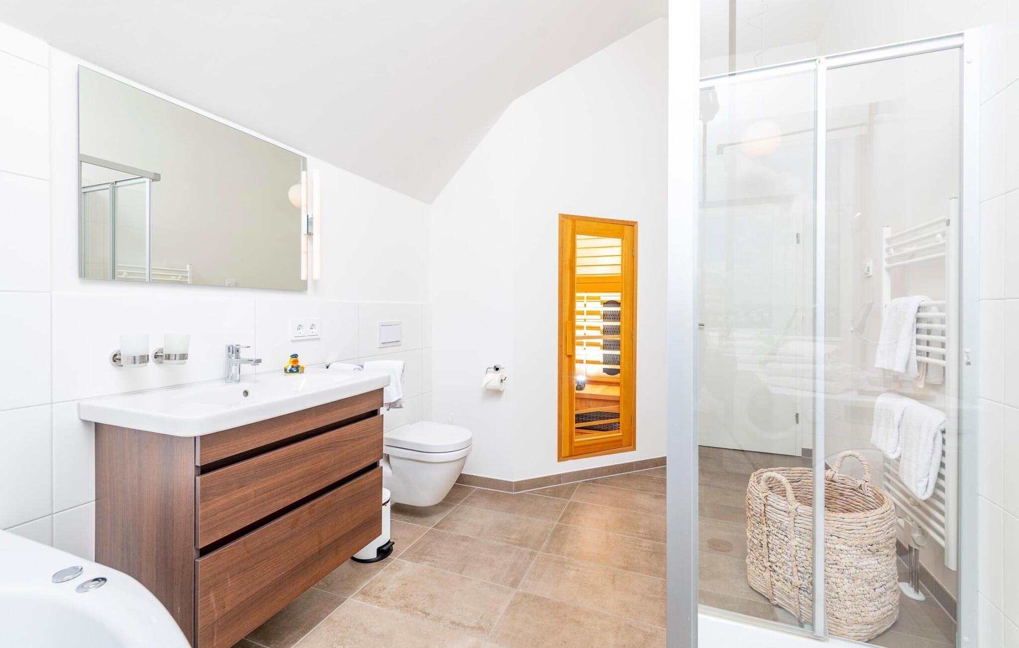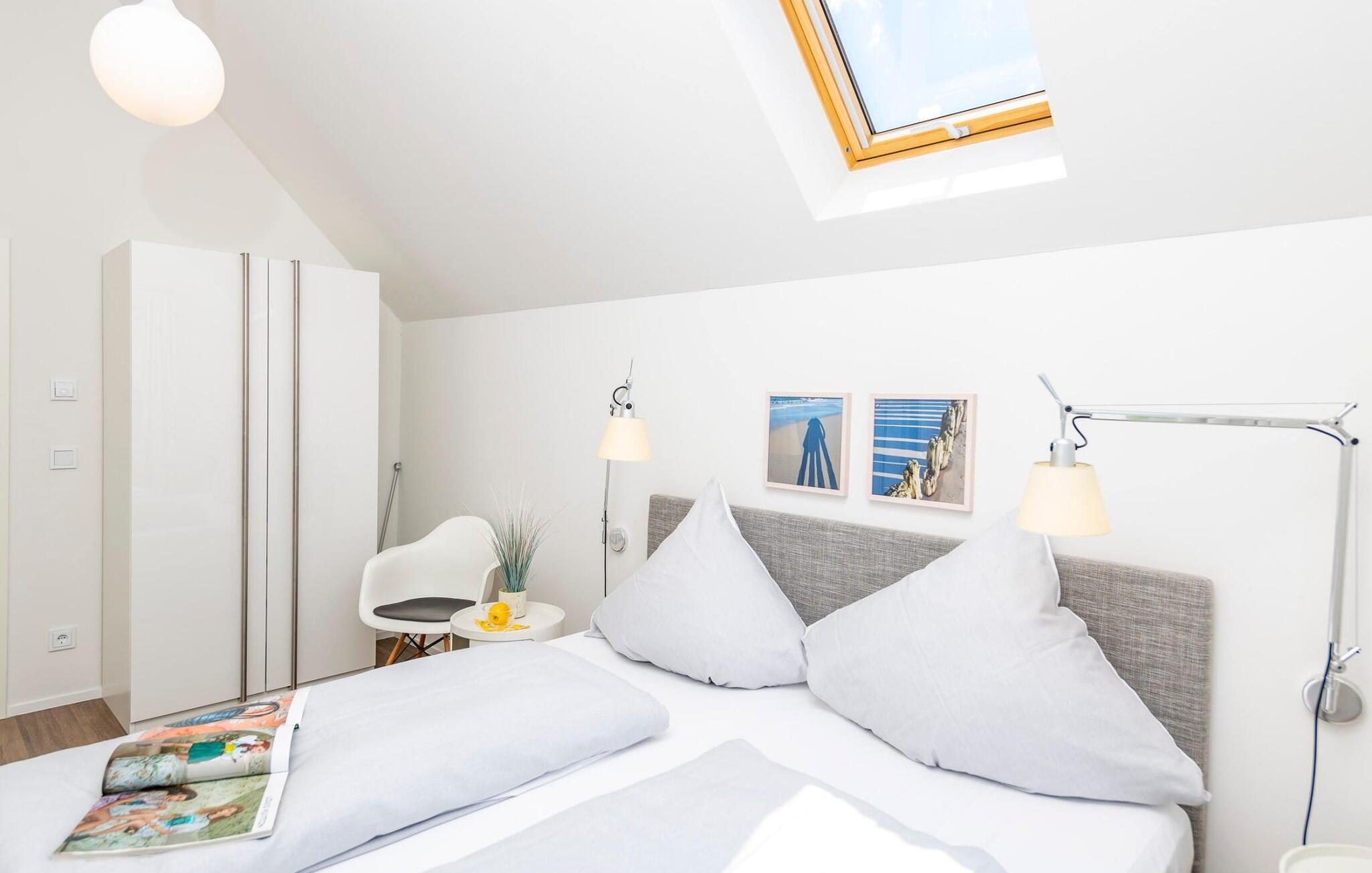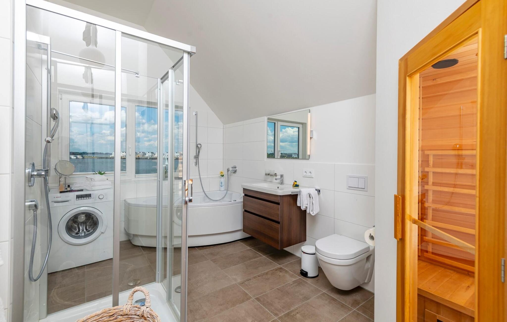 Med to boligniveauer og højt til loftet imponerer denne etagelejlighed, fordi den er åben og rummelig, følelsen af at bo i virkeligheden er som et lille hus. Nordisk design og moderne klassikere pryder interiøret. Et stenkast fra Weidefelds sandstrand og havnepromenaden ligger denne ferieejendom centralt i feriestedet Olpenitz ved Østersøen ved Slien og Østersøen. Opholds-/spiseafdelingen i ferieboligen på 1. plan er oversvømmet med lys med store panoramavinduer, der fører til de tilstødende terrasser på begge sider. En fantastisk udsigt åbner op på terrassen ved siden af opholdsstuen med udsigt over sejler- og sportsbådshavnen i OstseeResort Olpenitz. Havnebiografen sørger for underholdning under en hyggelig grillaften eller en romantisk middag med levende lys ved solnedgang. Køkken-alrummet er førsteklasses udstyret og giver fuld feriekomfort. Morgenmaden kan nydes sammen ved det store spisebord og i den skønne morgensol på den 24 m2 store terrasse. Ferie er garanteret selv i den mørke årstid, for hele ferieejendommen er udstyret med gulvvarme og har udover en varmende pejs også et privat wellnessområde. Der er infrarød varmekabine til to personer, hi-fi lydanlæg og LED farvelysterapi samt et stort hjørnespabad med udsigt til vandet - ren afslapning. Telekom Home Entertainment-programmet sørger for underholdning i dårligt nordisk vejr. Tæl stjerner for at hjælpe jer med at falde i søvn, nej, det er ikke en drøm. Et vindue over sengen giver direkte udsyn til himlen og gør det at falde i søvn og vågne op til en uforglemmelig ferieoplevelse. Det store soveværelse har også en unik udsigt til vandet. Badeværelserne på hver boligplan tilbyder særlig komfort (badekar med spabad og bruser på øverste etage og et brusebad på 1. sal). Ferielejligheden La Maisonette er en etagelejlighed på første og anden sal. En privat parkeringsplads med ladestation til elbil og et cykelskur er placeret lige foran huset. Vores yndlingssted: de to udendørs områder. Gå på terrassehop, og få mest muligt ud af Østersøbrisen og havnebiografen, afhængigt af solens position. Bemærk venligst: OstseeResort Olpenitz er meget populært, og der bygges fortsat i parken. Ikke desto mindre kan I se frem til en 5-stjernet standard og et førsteklasses ophold. Byggeaktiviteterne kommer ikke til at forstyrre jer på ferien, og derfor gives der ikke yderligere afslag i prisen.