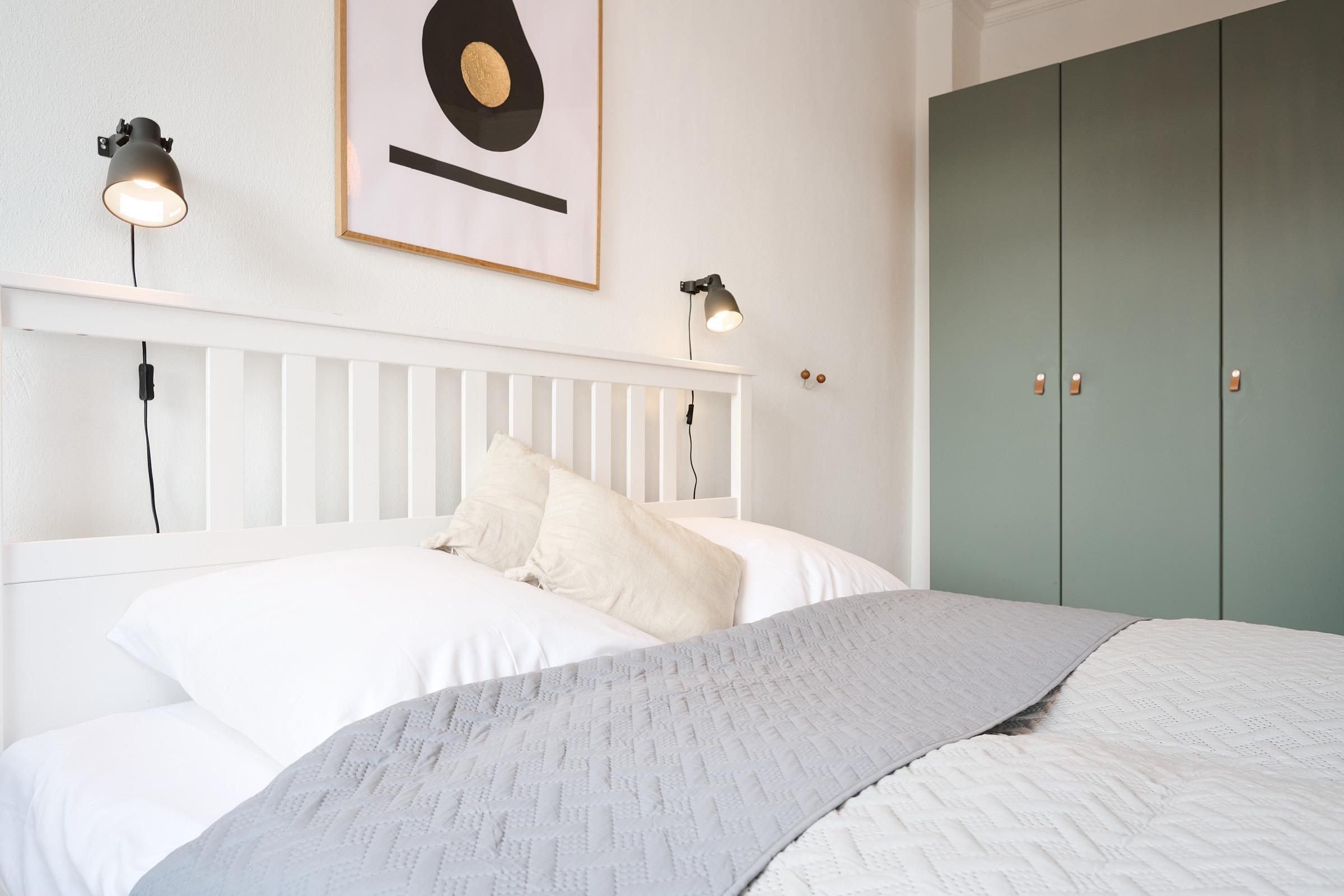Schlafzimmer 1: Doppelbett, Kleiderschrank, Verdunkelung: Rollo