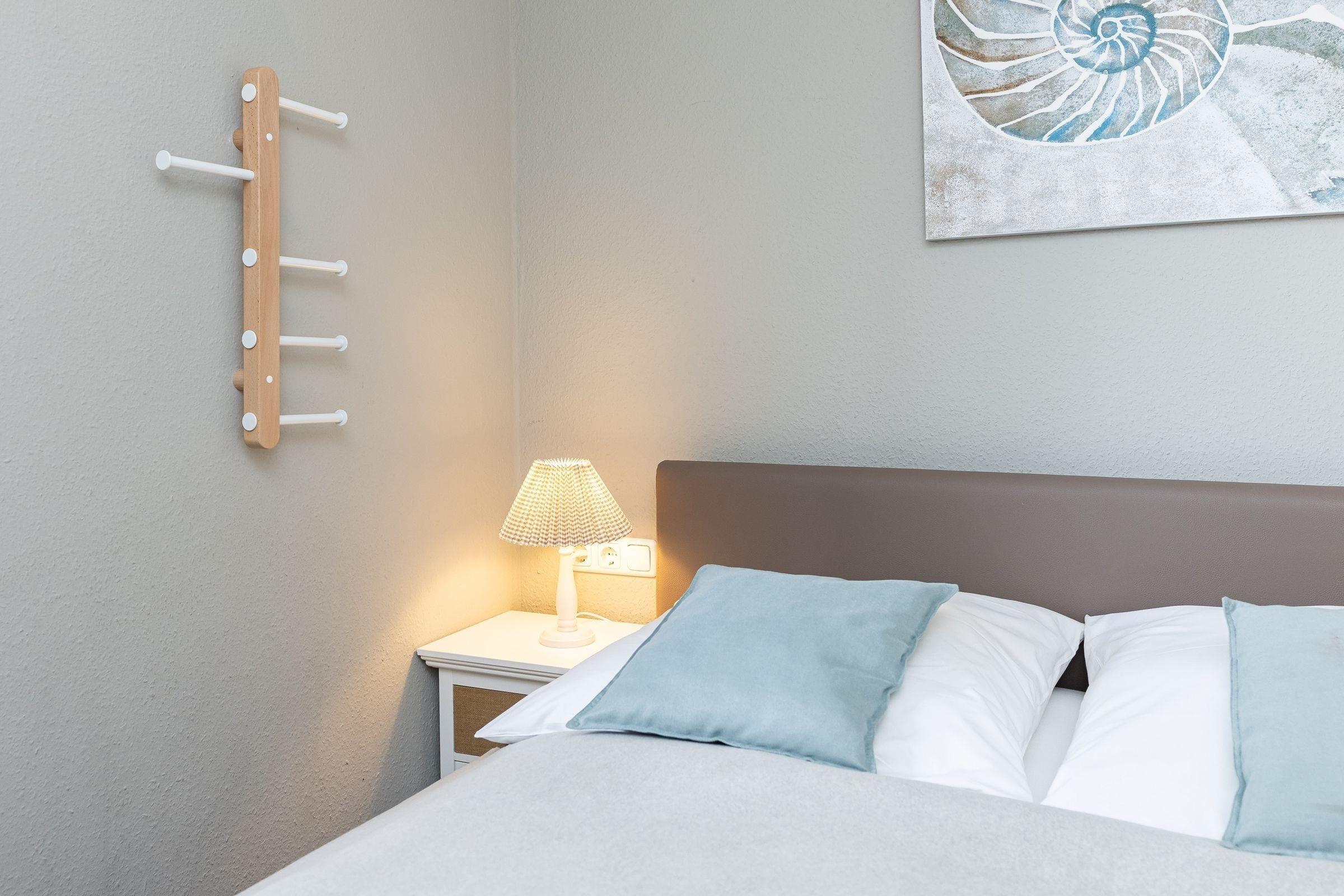 Schlafzimmer: Doppelbett (2x 80x200 cm), Verdunkelung (Plissee)