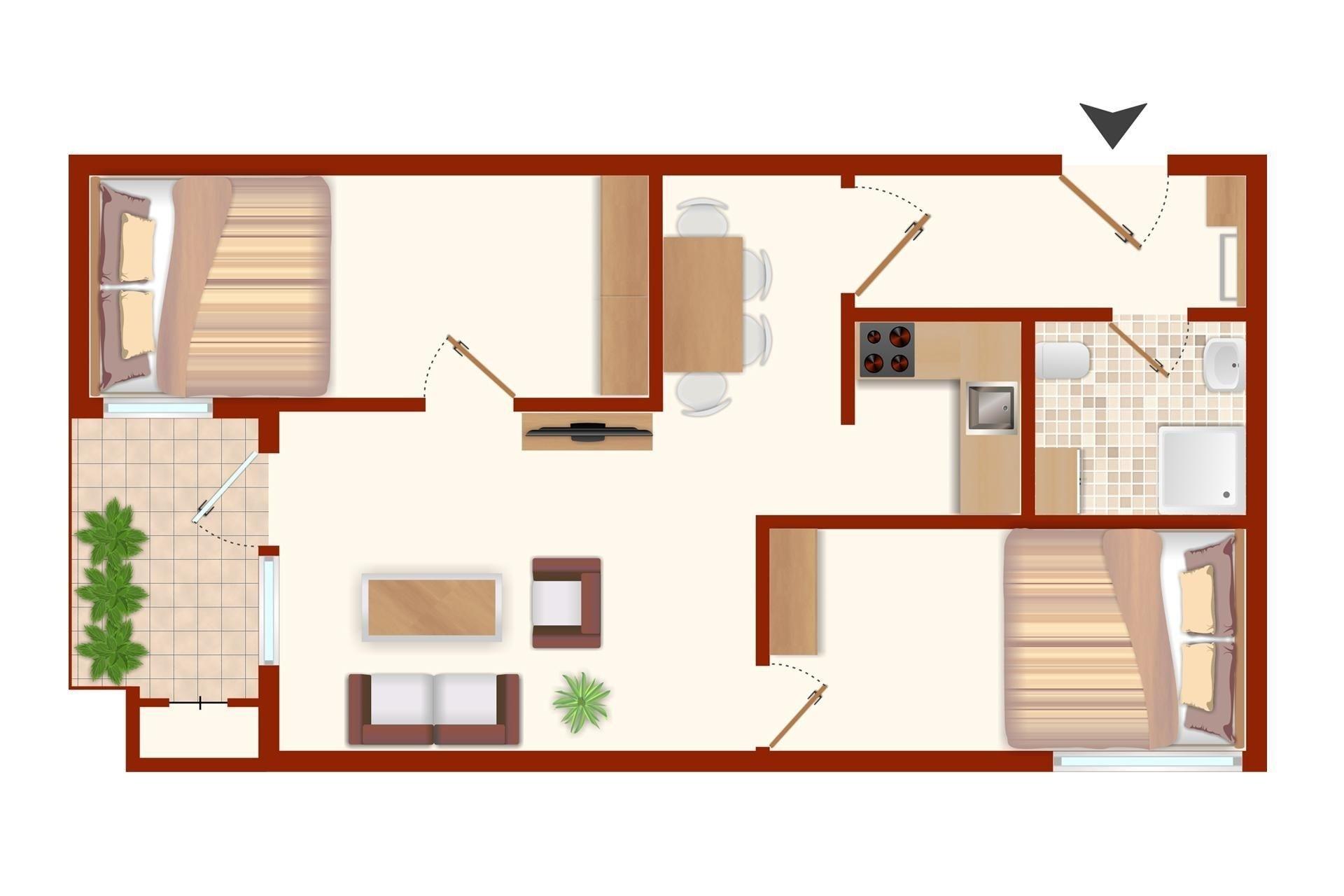 Das geschmackvoll eingerichtete 3-Zimmer-Appartement liegt nur wenige Schritte vom Strand entfernt. Es befindet sich im 3. Stock und bietet Platz für bis zu 4 Personen.
