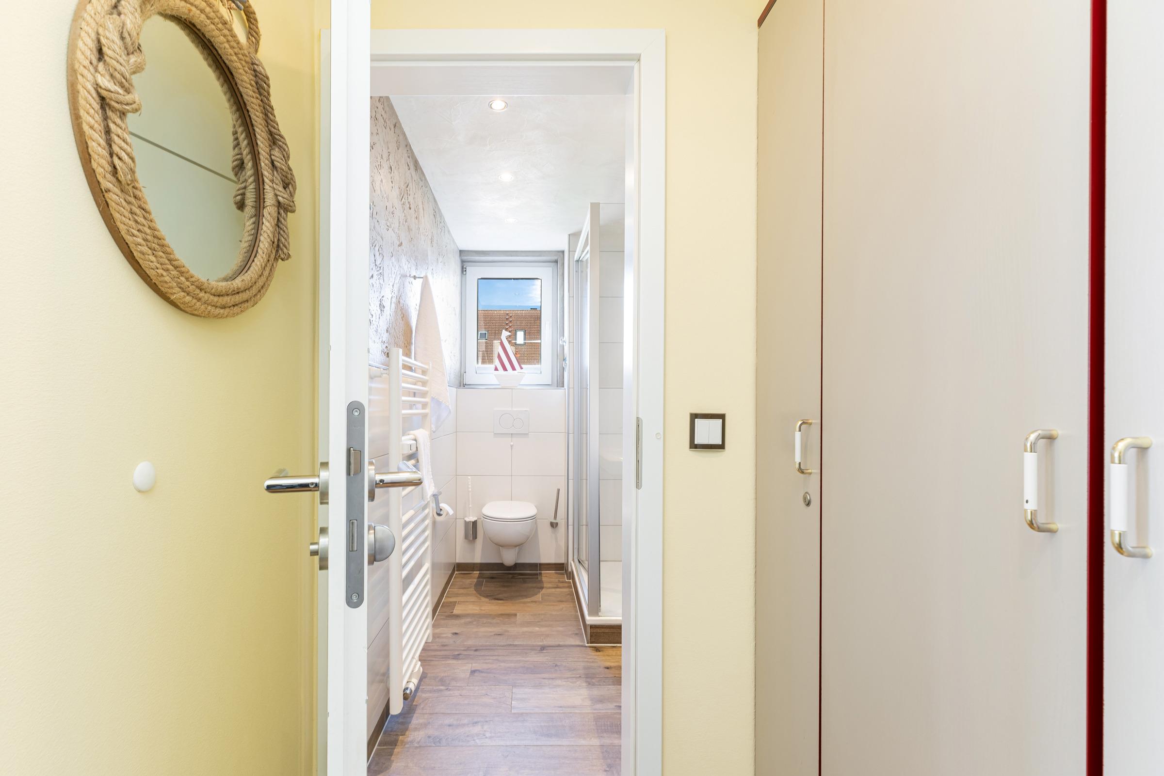 Die liebevoll eingerichtete 2-Zimmer-Ferienwohnung befindet sich im 2. Stock. Von hier haben Sie einen herrlichen Blick auf die Kieler Förde und den Strand von Laboe. Sie erreichen Ihr Feriendomizil bequem über den Aufzug oder die Treppe.