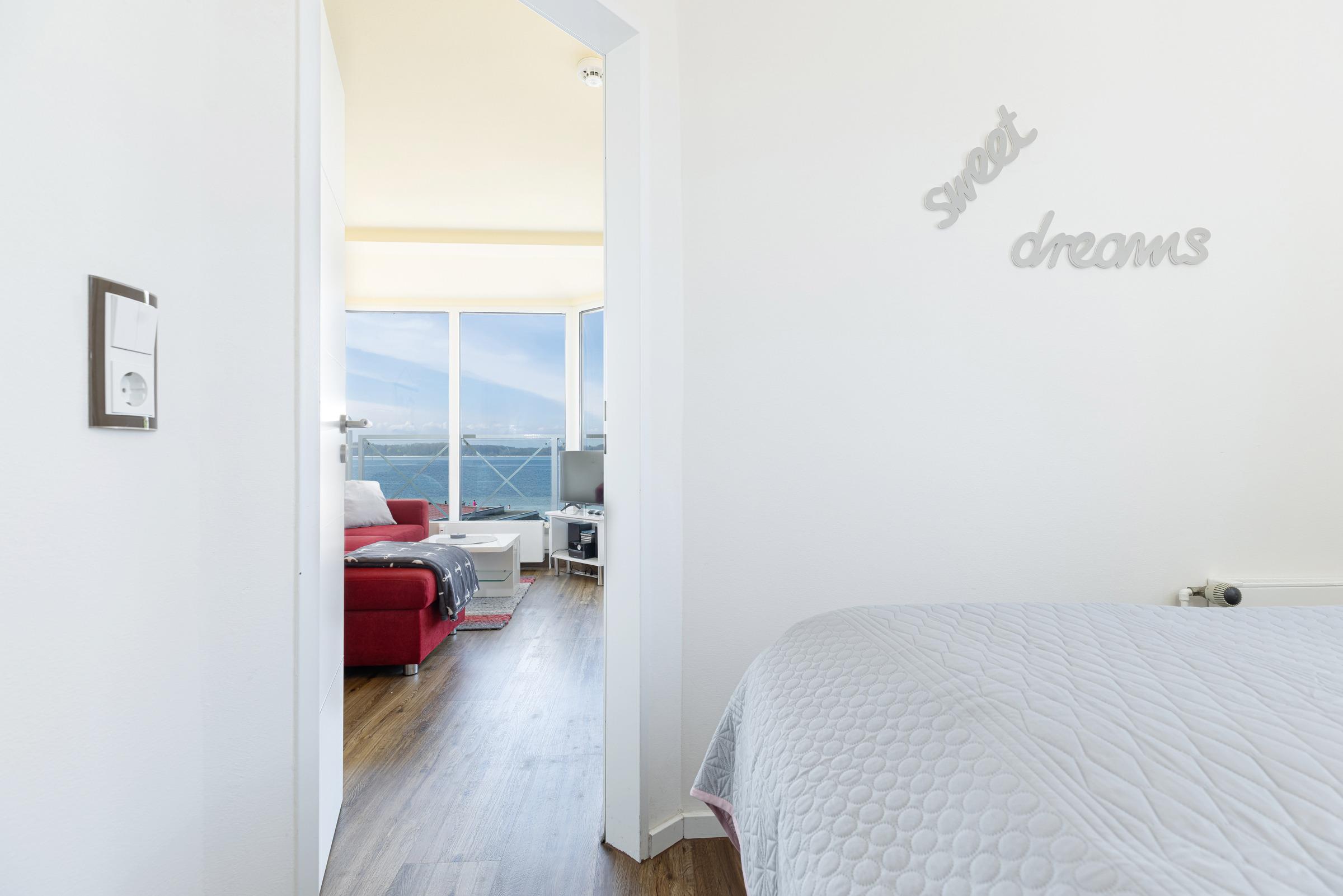 Die gut ausgestattete Wohnung ist für max. 2 Personen geeignet und unterteilt sich in ein großzügiges Wohnzimmer mit Sofa und angrenzendem Essbereich und offenem Küchenbereich, ein gemütliches Schlafzimmer mit Boxspringbett (160x200 cm) und ein Duschbad mit Handtuchheizung. Vom Balkon haben Sie einen schönen Blick auf den Strand, die Kieler Außenförde und die vielen vorbeifahrenden Schiffe. Der perfekte Platz für den ersten Kaffee am Morgen und laue Abende mit einem Gläschen Wein.