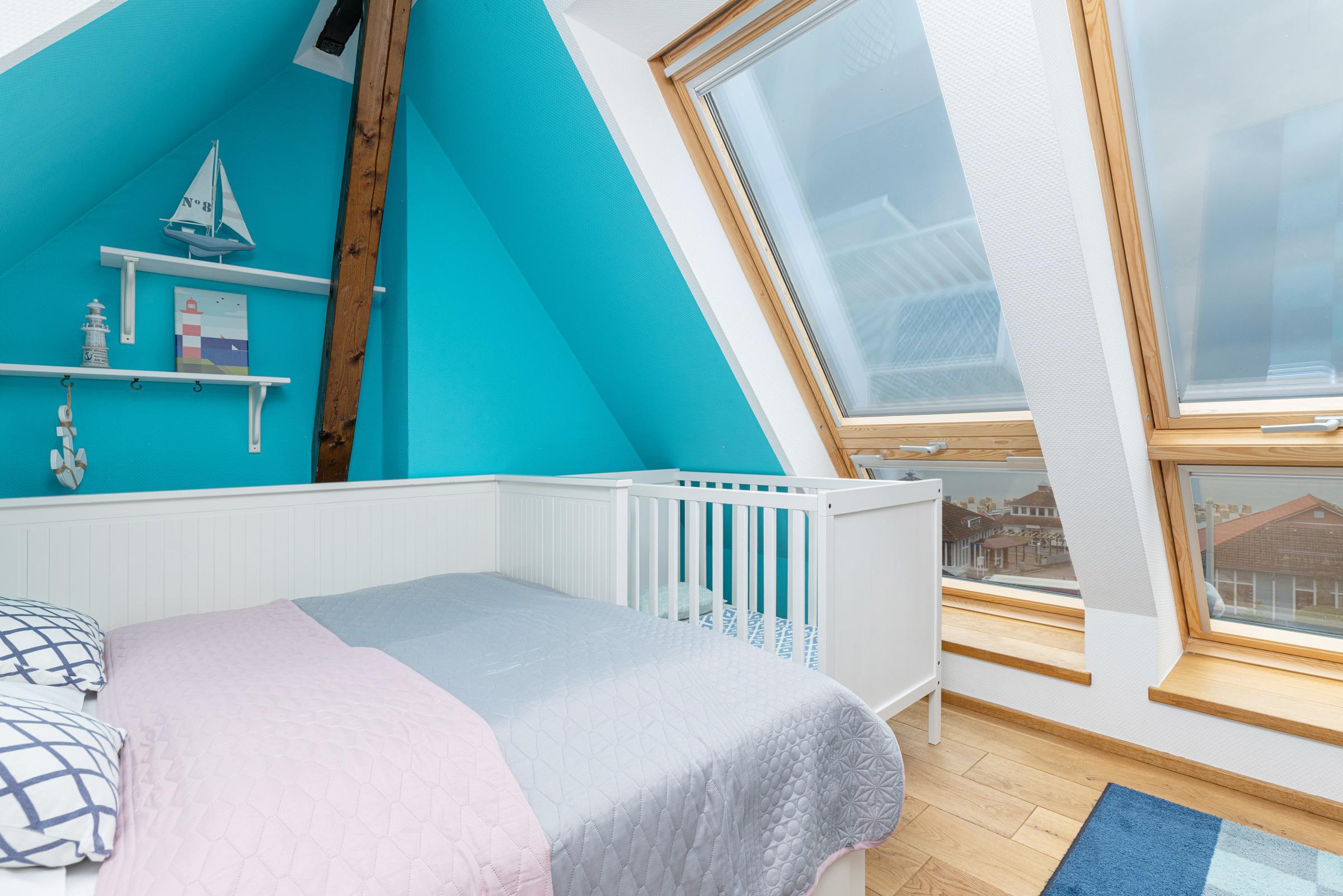 Schlafzimmer 3: 1 Doppelbett (180x200 cm), Platz für Babybett vorhanden