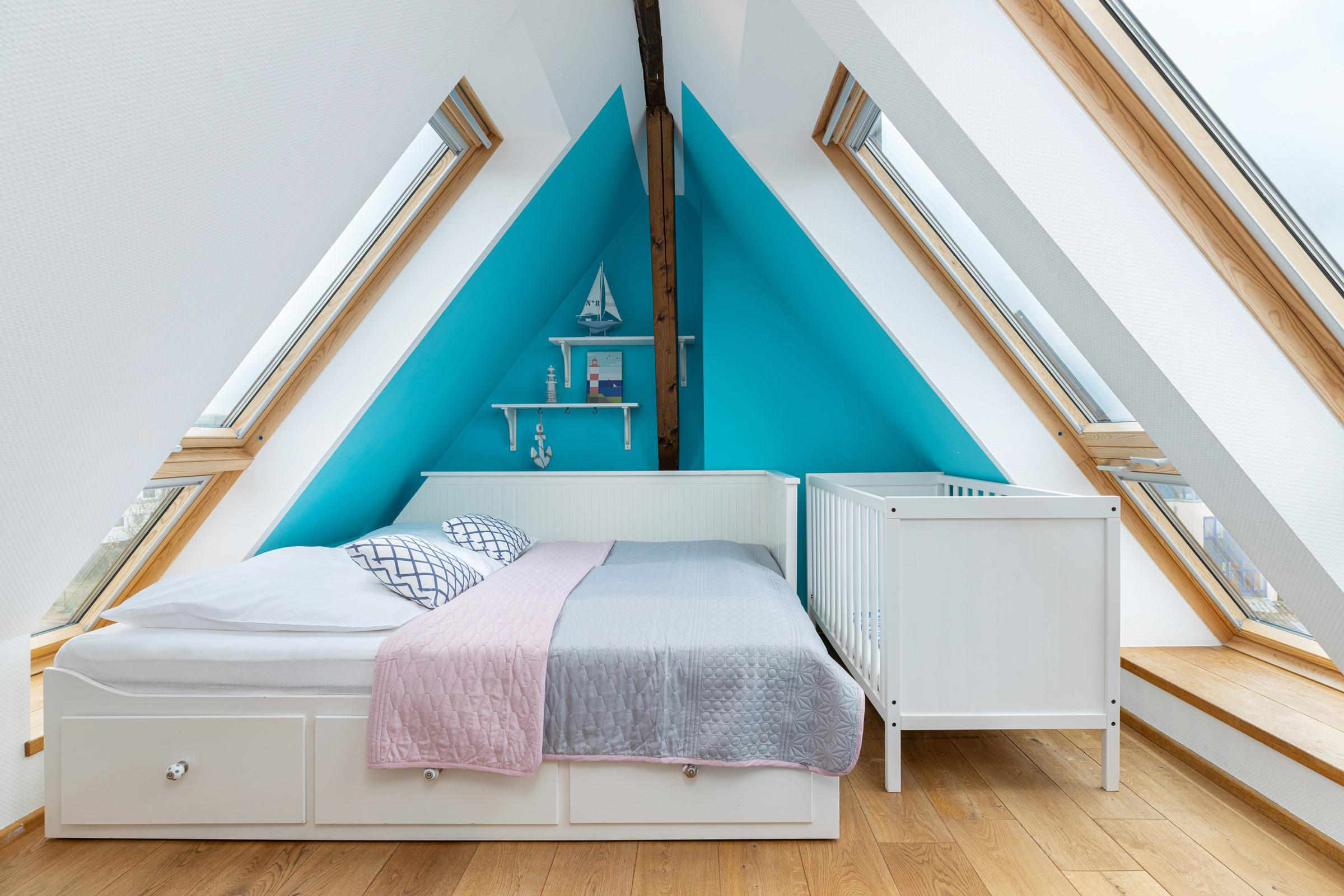 Die liebevoll eingerichtete 5-Zimmer-Dachgeschosswohnung im 4. Stock über zwei Ebenen bietet gemütlichen Platz für 8 Personen.