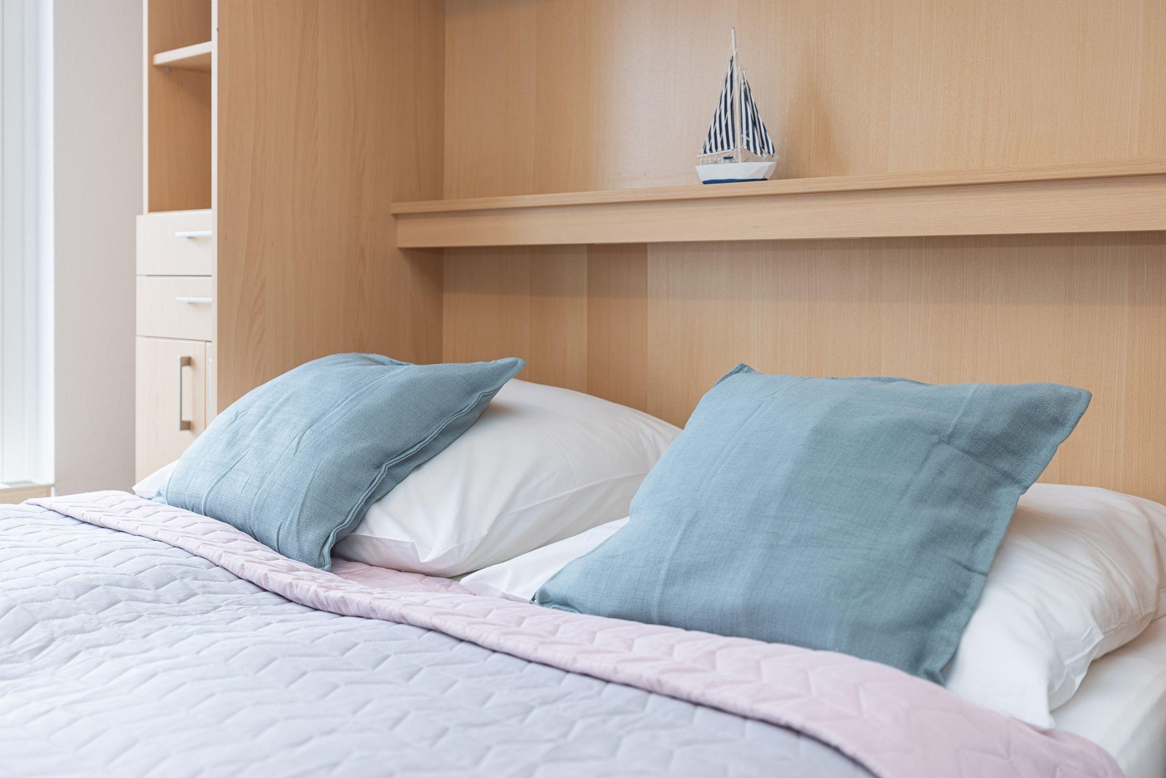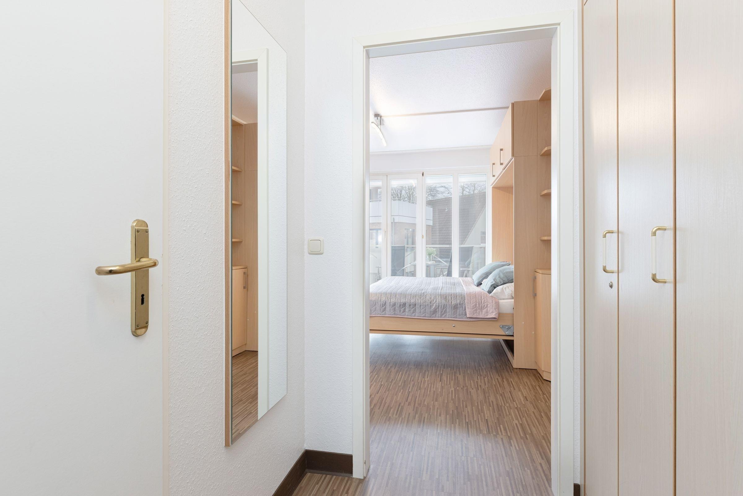 Der kombinierte Wohn-Schlafraum bietet Ihnen erstaunlich viel Platz mit einer modernen Ausstattung. Tagsüber nehmen Sie Platz in den bequemen Sesseln oder auf dem Balkon, abends verwandelt sich die Schrankwand in ein geräumiges Doppelbett. Ein kleines Badezimmer mit Dusche und einem Waschtisch mit viel Ablagefläche rundet dieses Angebot ab. Genießen Sie die Morgensonne auf Ihrem Balkon oder gehen Sie frühstücken bei einem Bäcker im nur wenige Schritte entfernten Zentrum. Viele Restaurants und auch der gemütliche Hafen befinden sich in der Umgebung.