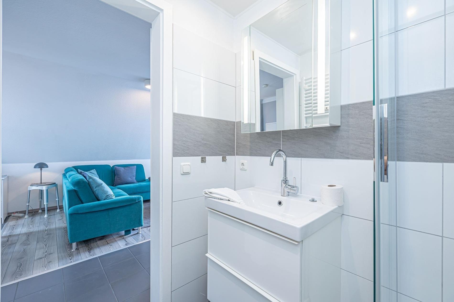 Das maritim eingerichtete 2-Zimmer-Appartement Cutty Sark ist für max. 4 Personen geeignet. Es befindet sich in der 1. Etage des Appartementhauses Windjammer.