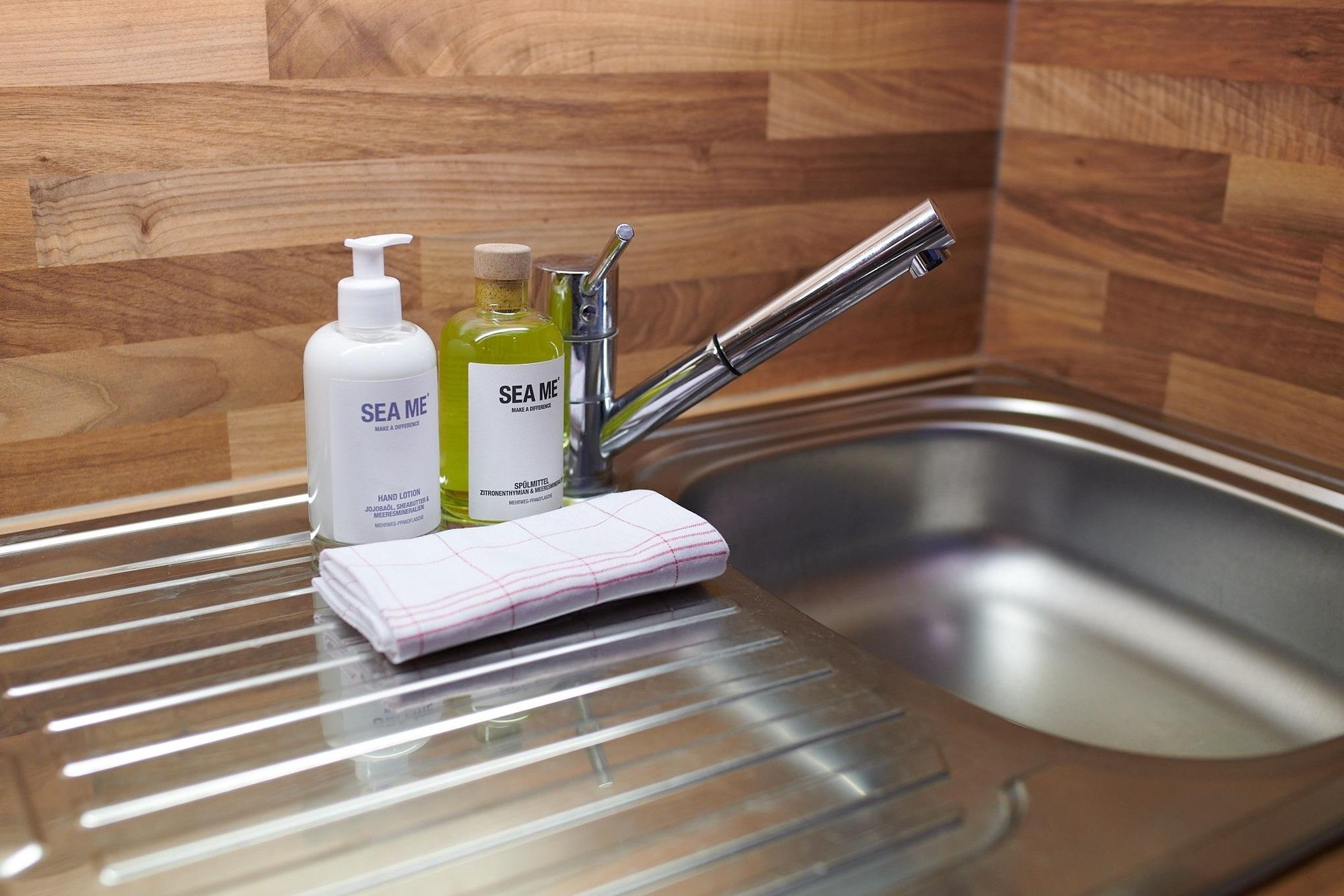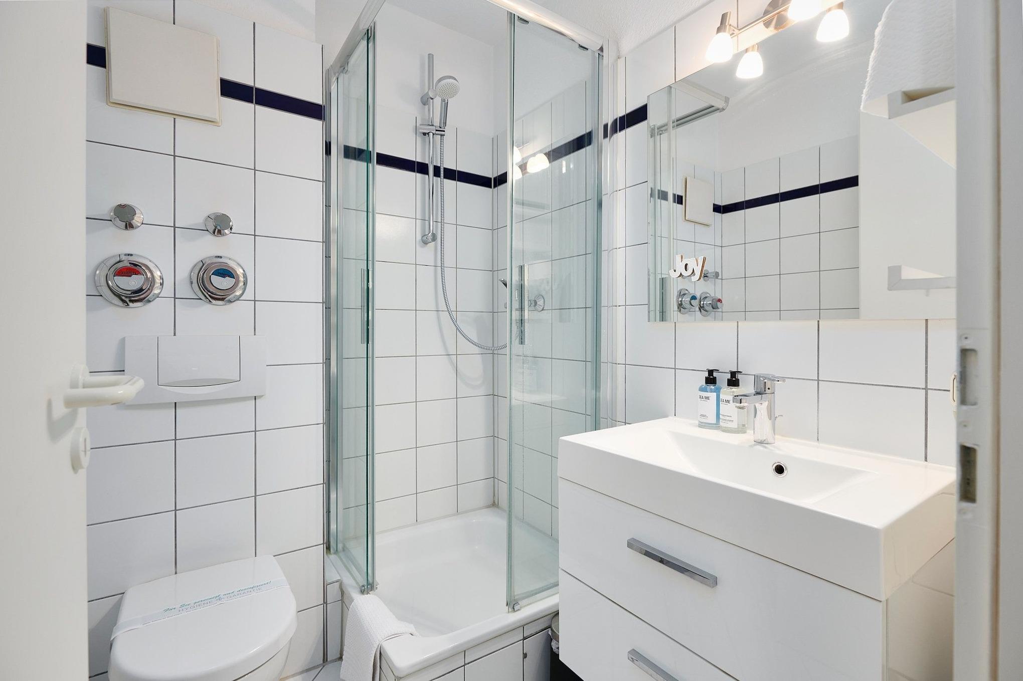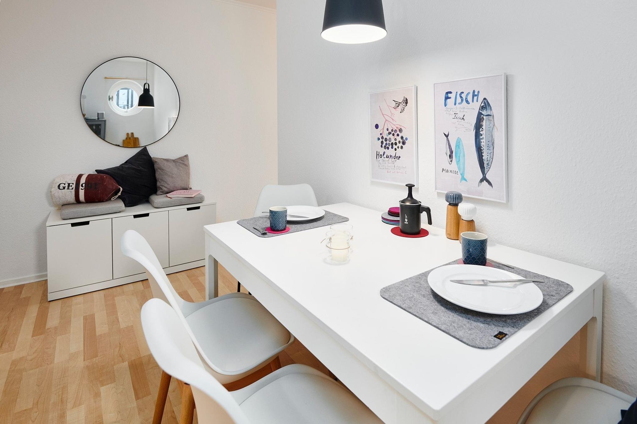 Die Wohnung besteht aus einer Pantry-Küche, Badezimmer mit Dusche, Wohnbereich mit einer Schlafcouch und einem kleinen, aber feinen Schlafzimmer mit Doppelbett. In der maritim ausgestatteten Wohnung erwartet die Gäste nicht nur eine tolle technische Ausstattung mit WLAN, Netflix, Alexa und einem Sonos Bluetooth Lautsprecher, sondern ganz klassisch auch Brettspiele und Bücher, mit denen man sich auf dem Balkon oder im Wohnzimmer wunderbar beschäftigen kann. Genießen Sie einen atemberaubenden Panoramablick auf die Kieler Förde.