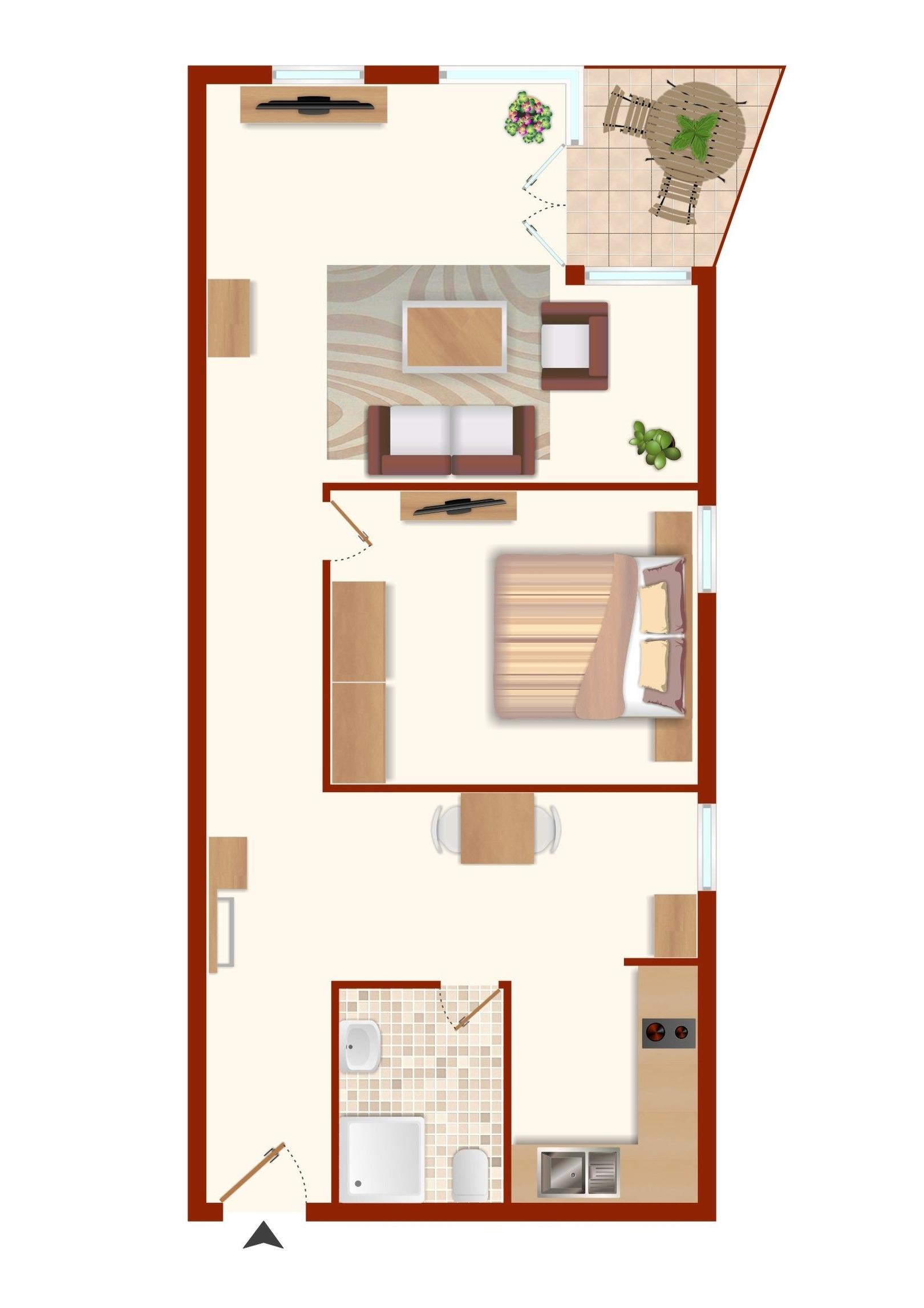 Die 2-Zimmer-Ferienwohnung Eagle im Haus Windjammer befindet sich im Hochparterre und bietet Platz für max. 3 Personen.