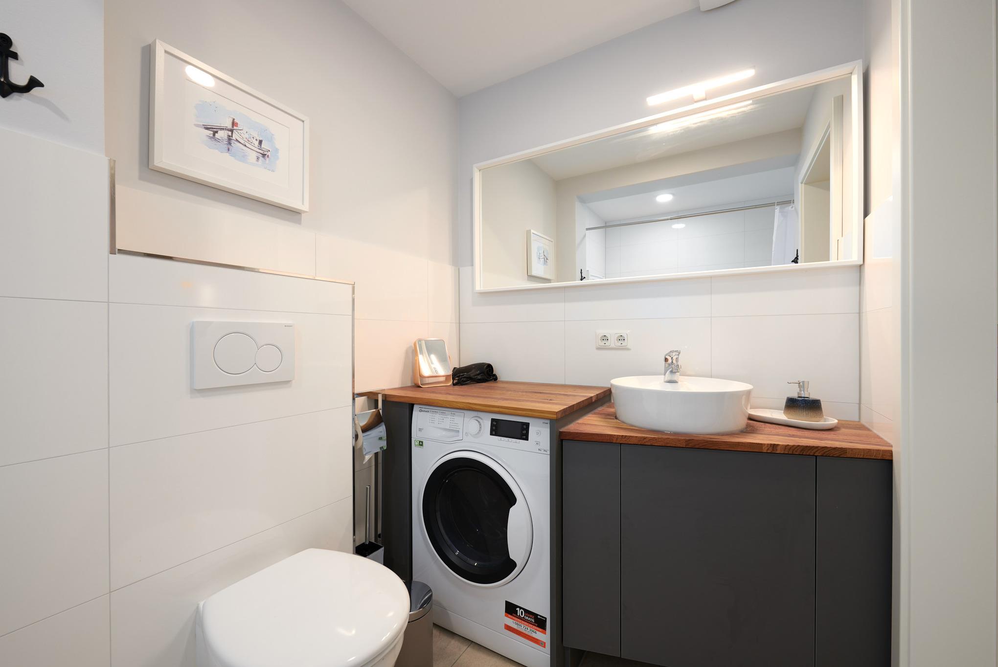 Die stilvolle Ferienwohnung überzeugt mit einem modernen Wohnbereich, der mit gemütlicher Sitzgruppe und großem Flatscreen-TV zum Entspannen einlädt. Von hier aus gelangen Sie direkt auf die sonnige Terrasse, die nach Süd-Ost ausgerichtet ist und mit Gartenmöbeln und einem Strandkorb zum Frühstück im Freien oder entspannten Stunden am Abend einlädt. Auch Grillen ist hier erlaubt. Die offene Küche ist voll ausgestattet und bietet neben einem Backofen, Induktionsherd, Geschirrspülmaschine und Kühlschrank auch eine Mikrowelle, Kaffeemaschine und Toaster – ideal für die Selbstversorgung im Urlaub. Im Essbereich finden alle Gäste bequem Platz. Zwei separate Schlafzimmer, jeweils mit komfortablen Doppelbetten ausgestattet, sorgen für erholsame Nächte. Das Badezimmer bietet eine bodengleiche Dusche, WC, Haartrockner, Kosmetikspiegel sowie einen beheizbaren Handtuchhalter und lässt keine Wünsche offen.