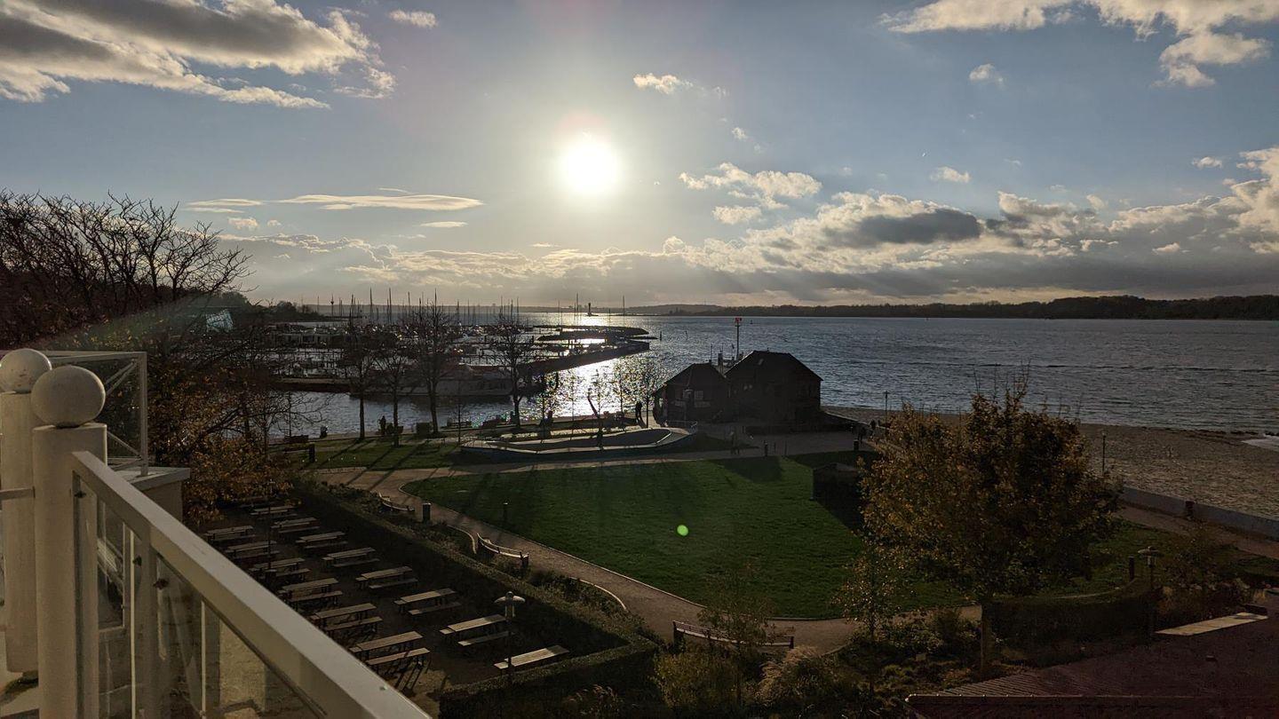 Und dann dieser Ausblick. Vom Balkon deiner Wohnung reicht der Blick über die Förde – von der Friedrichsorter Enge bis in die weite Kieler Bucht. Morgens beim Kaffee, abends beim Glas Wein: Das ist Urlaub mit Meeranschluss.