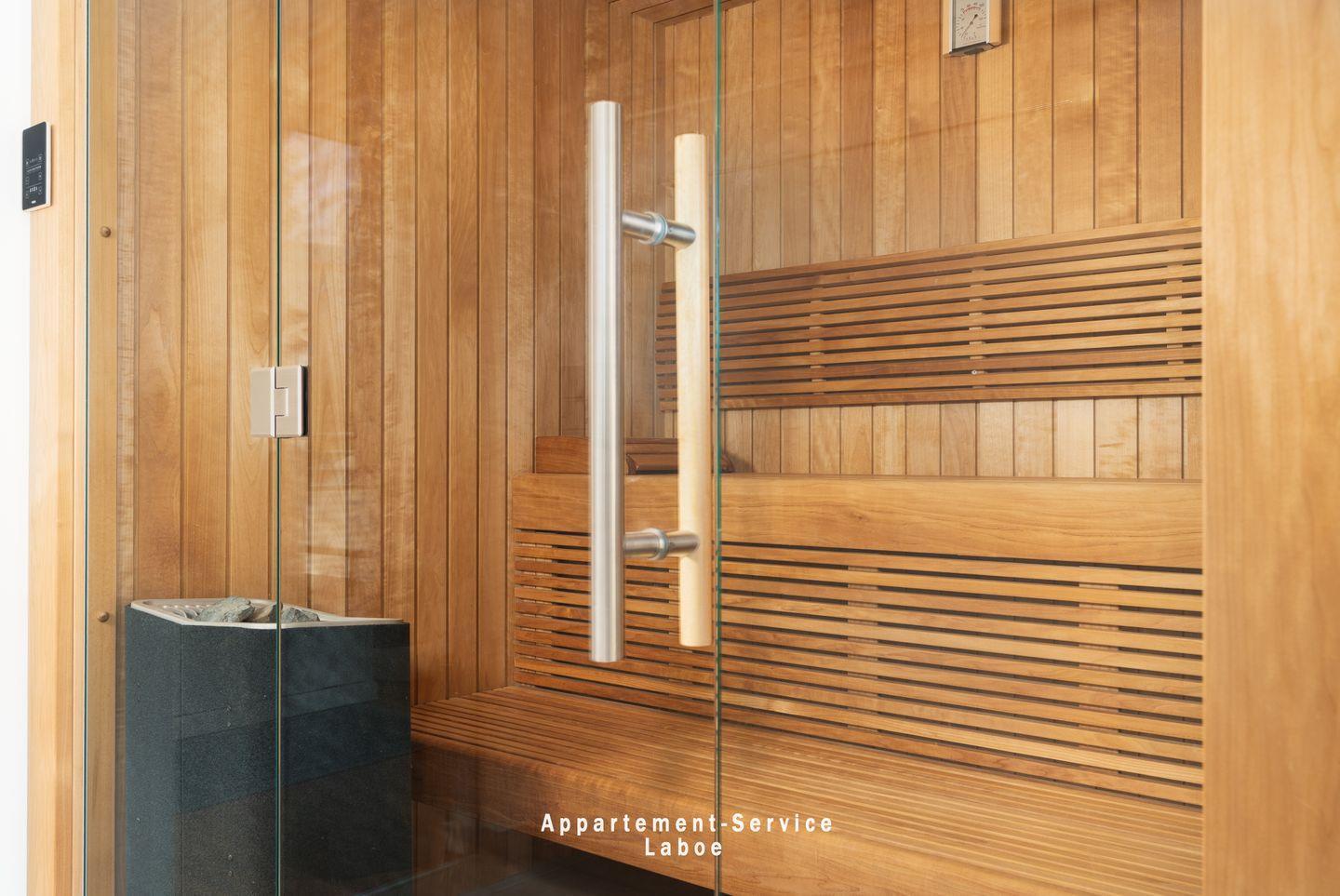 Das Hausboot bietet zudem ein Schlafzimmer mit einem komfortablen Doppelbett, in dem du wunderbar zur Ruhe kommst. Das moderne Duschbad mit WC und Waschbecken ist praktisch und stilvoll gestaltet. Und das Beste? An Bord gibt es eine private Sauna, in der du nach einem Tag am Strand oder einem Ausflug nach Laboe so richtig abschalten kannst.
