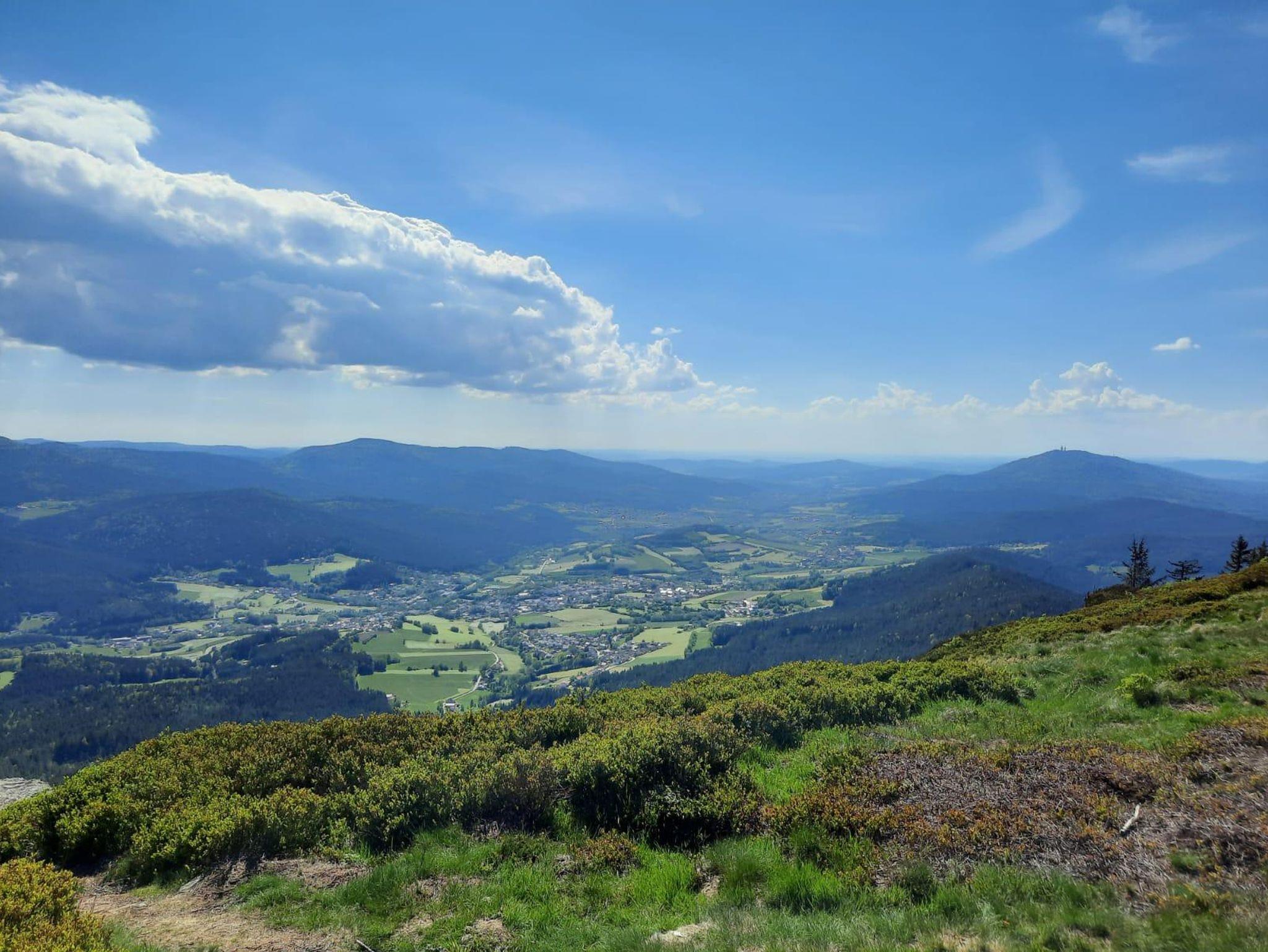 Unsere neu renovierte Ferienwohnung im ersten Stock liegt in ruhiger Lage am Fuße des Ossers nur fünfzehn Gehminuten vom Ortszentrum entfernt. Vom Anwesen haben Sie einen einzigartigen Blick zum Ossergipfel und den umliegenden Bayerwaldbergen.