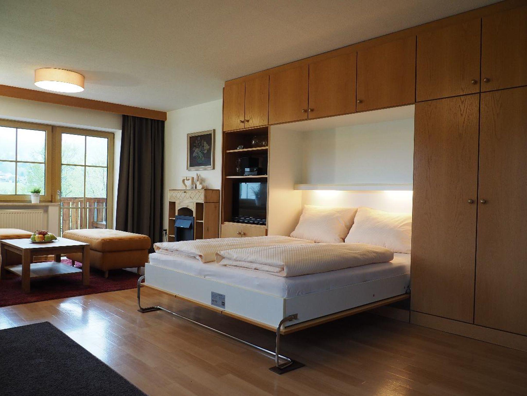 Unser 2-Zimmer-Appartement für bis zu 4 Personen bietet Ihnen neben einem kombinierten Wohn- und Schlafraum mit verstaubaren Betten ein separates Schlafzimmer, eine komplett ausgestattete Küche mit Spülmaschine und Mikrowelle, Bad mit WC sowie ein separates WC, Flachbild-TV mit Sat-Anschluss, Kamin, DAB+-Stereoanlage mit CD und USB-Anschluss sowie einen reservierten KFZ-Stellplatz.