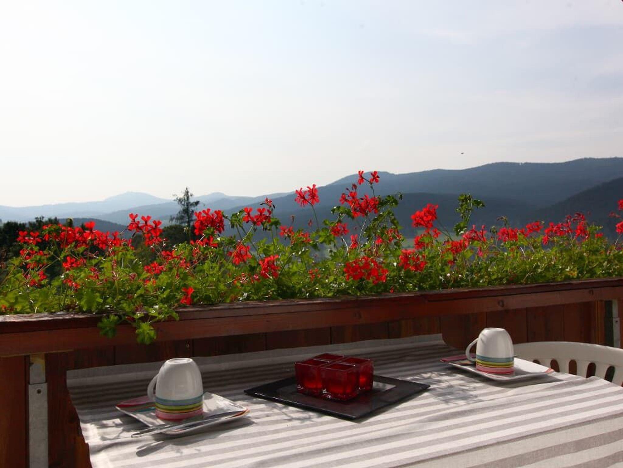 In herrlicher, ruhige Südhanglage befinden sich unsere kinderfreundlichen Ferienwohnungen mit dem großen Obstgarten und Naschhecke (Himbeeren, Johannisbeeren, Brombeeren). Unter den alten Kirsch- und Apfelbäumen finden Sie gemütliche Sitzgruppen und Liegen, sowie einen Grillplatz.