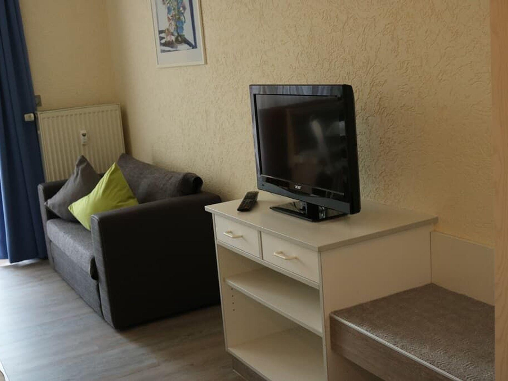 Gemütliches Ein-Raum-Appartement mit 25qm Wohnfläche und Terasse. Unser kleines Appartement OSSER bietet Platz für max. 2 Erwachsene. Für Ein oder Zwei Kinder steht ein kleines Sofa zum ausziehen zu Verfügung. Das mit gepflegten, hellen Möbeln ausgestattete Appartement mit Vinylboden verfügt über SAT/TV, Bad/WC, ein Doppelbett, Ausziehcouch (für die 3. Person oder 2 kleine Kinder, 1,40m x 1,90m), Essecke, Kleiderschrank und großem Spiegel. In der kleinen Küche im Schrank finden Sie alles notwendige was Sie für Ihren Aufenthalt brauchen: Kühlschrank mit Gefrierfach, 2 Herdplatten, Spülbecken, Spülmittel und Spülschwamm, Besteck, Kaffeemaschine, Wasserkessel, Toaster, Kaffee- und Tafelservice, Gläser, Teekanne, Müslischalen, Eierbecher, Schneidebretter, Salatschüssel, Abtropfsieb, 2 Töpfe und 1 Bratpfanne. Kehrbesen, kl. Eimer mit Microfasertuch sowie sämtliche Reinigungsmittel. Im Badezimmer befindet sich eine Badewanne mit Duschvorhang, Toilette und Waschbecken. Die 3 Parkplätze vor, sowie die Parkplätze links von unserem Gebäude, sind kostenfrei. Haustiere sind nicht erlaubt. Im Appartement ist W-LAN empfang.