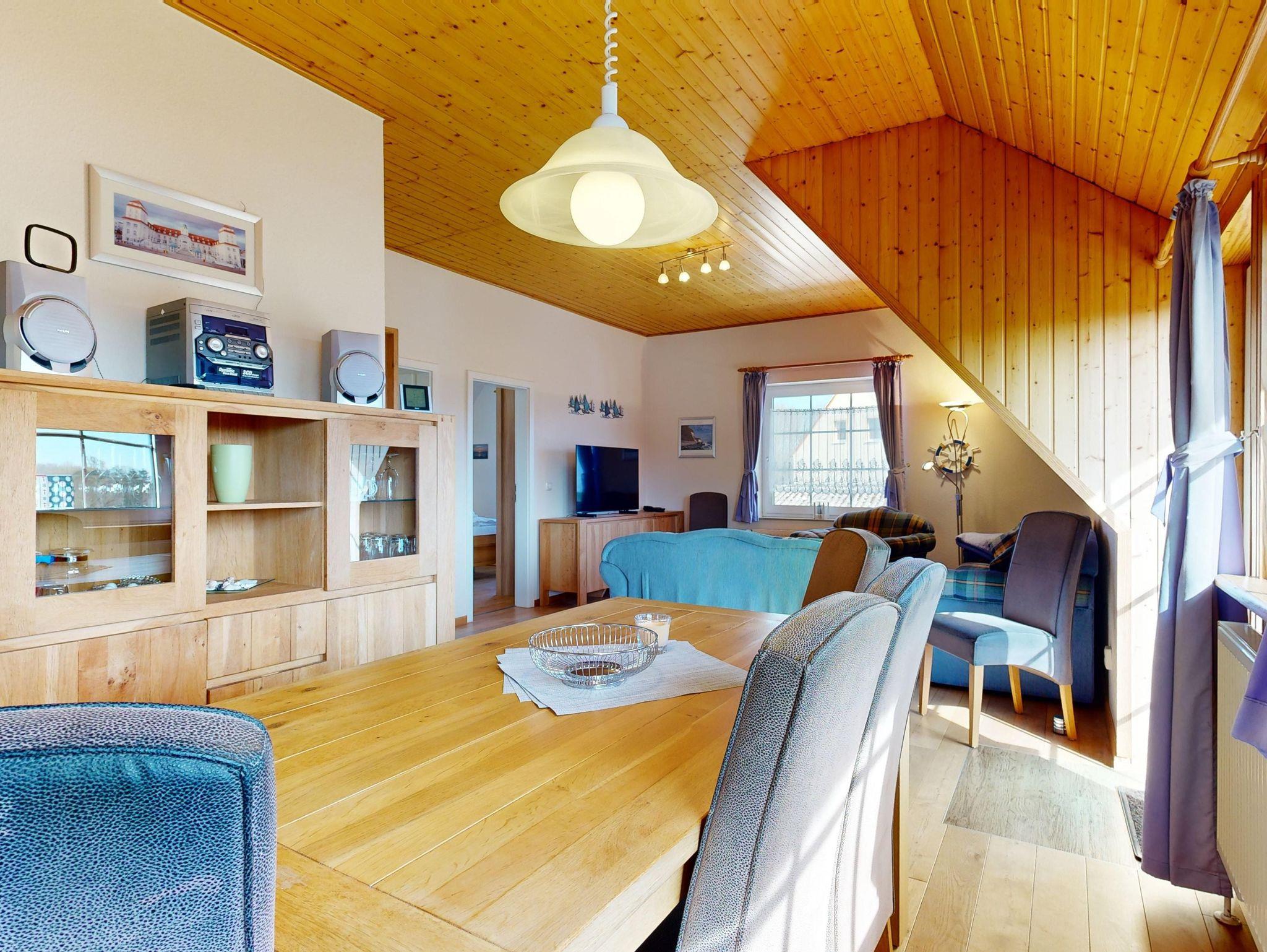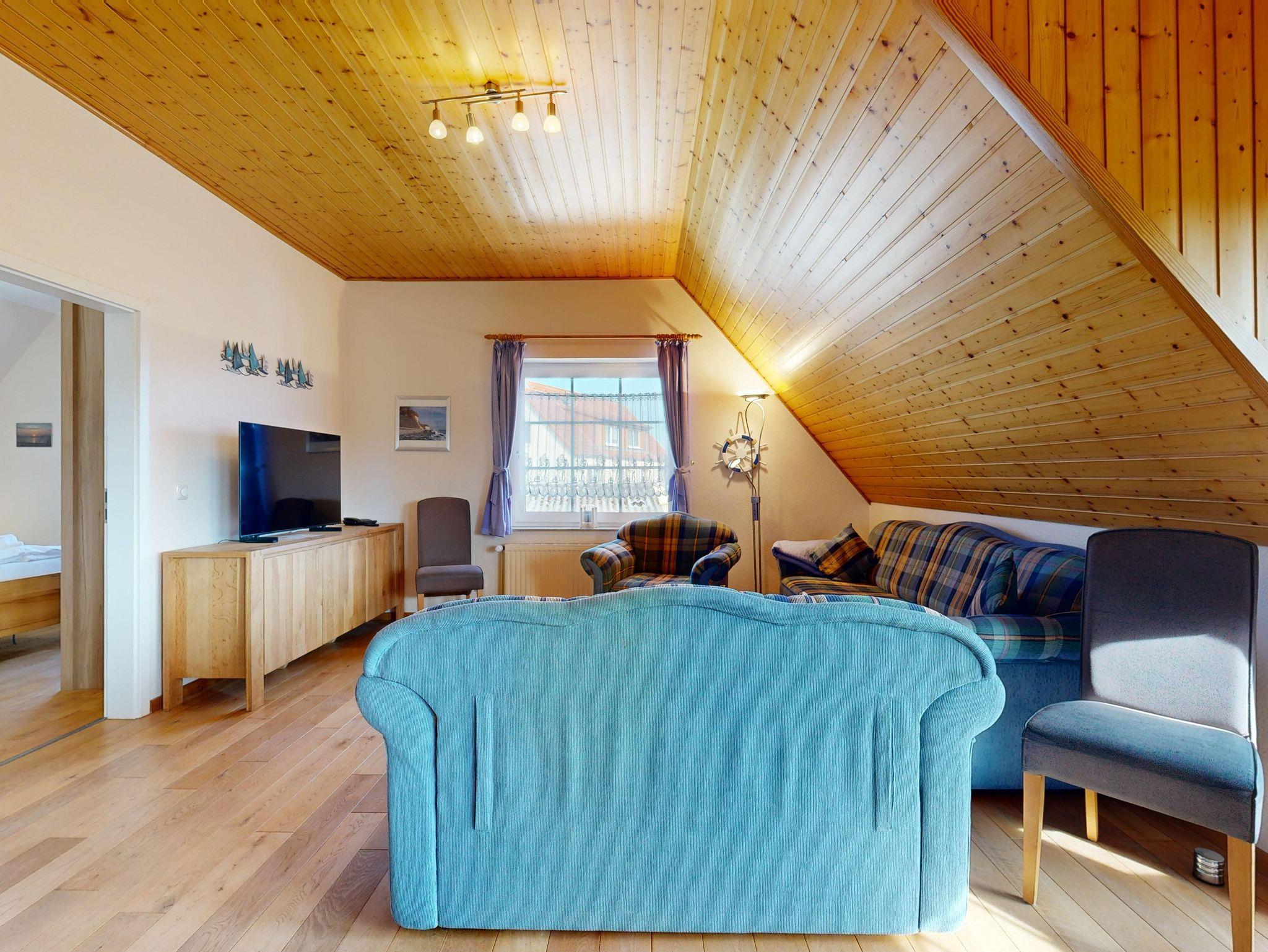Die Ferienwohnung für 4 Personen (67 qm) befindet sich im reetgedeckten Ferienhaus Möwe in dem einmaligen Urlaubsort Lancken-Granitz an der 100 Jahre alten Dorflinde. Sie verfügt über eine hochwertige Ausstattung