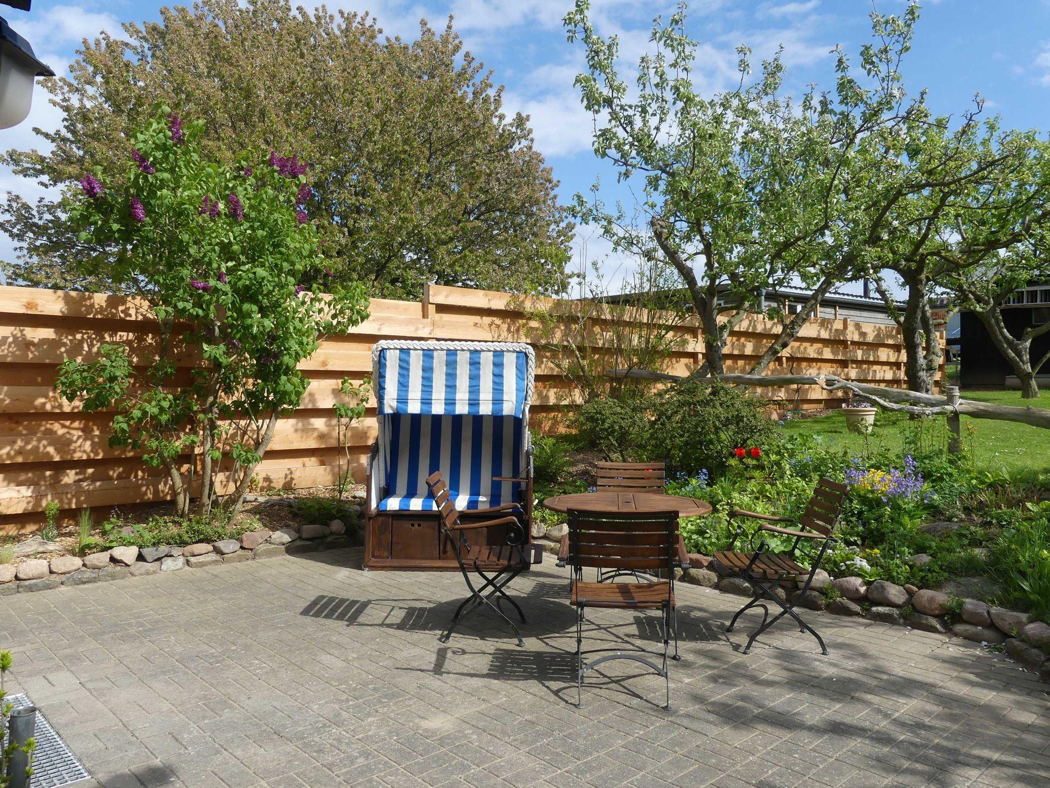 *Terrasse mit Gartenmöbeln und Strandkorb