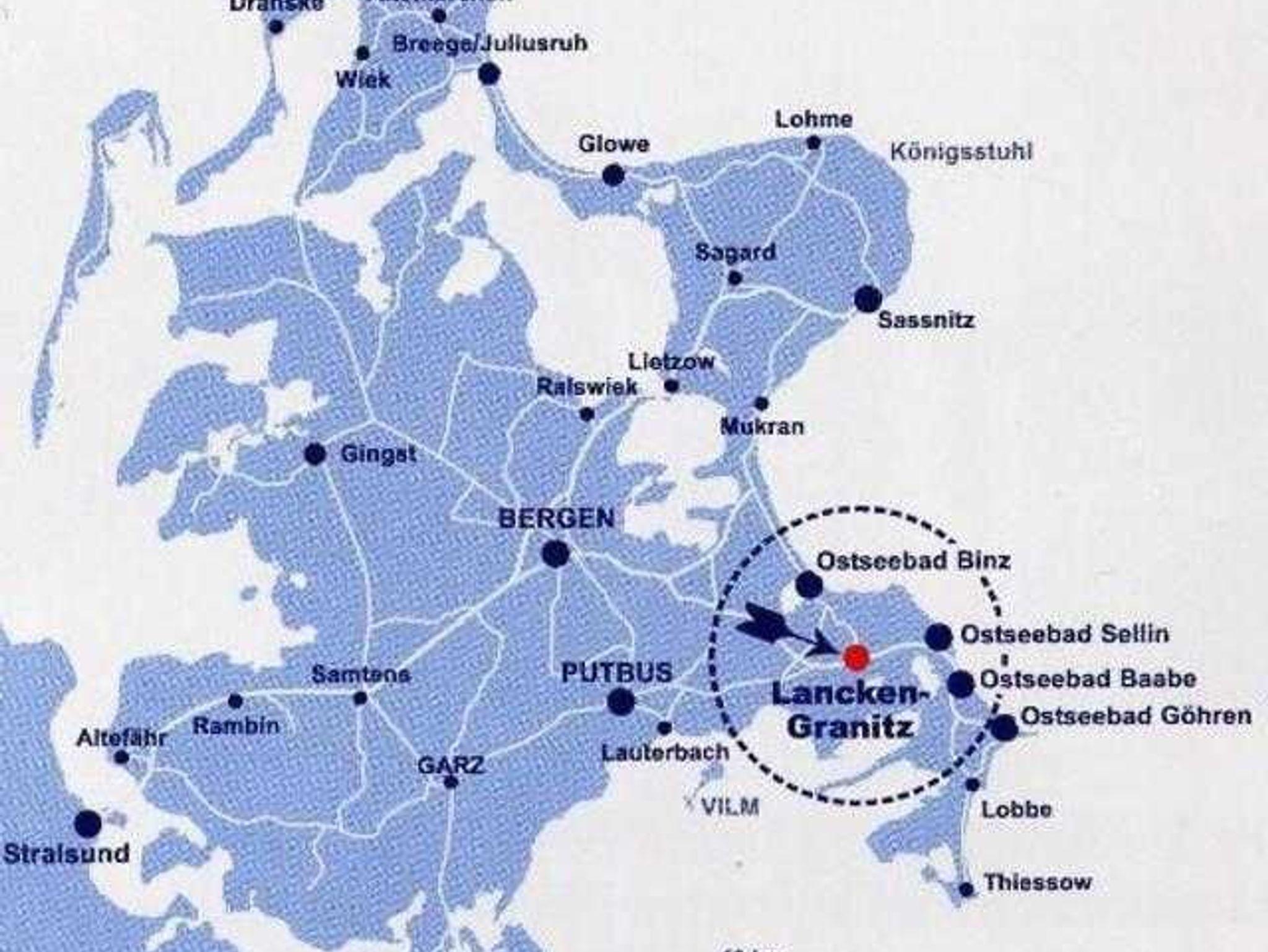 Die Ferienwohnung befindet sich in einem gepflegten Vorort des Ostseebades Sellins, ca. 4km vom Sandstrand entfernt, in ruhiger Lage. Lancken-Granitz ist von Wäldern, Wiesen und dem Neuensiener See umgeben. Hier ist ein idealer Ausgangspunkt für Ihre Wander- und Radtouren. Nicht nur das Jagdschloß Granitz ist ein lohnendes Ziel. Lassen Sie sich von der herrlichen Umgebung verzaubern.