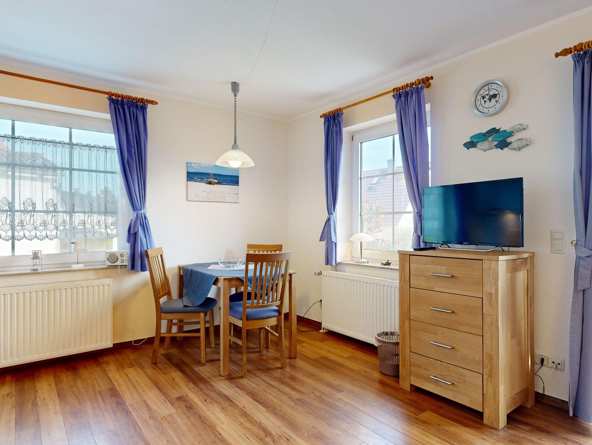 Wohnzimmer: Couchgarnitur (Schlafgelegenheit für 1 Pers.), Smart-TV, Radio mit CD, WLAN- Internetanschluss