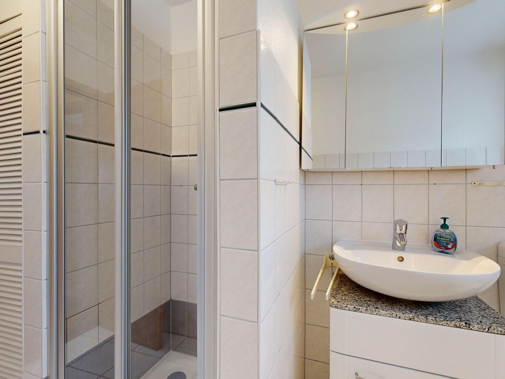1 Badezimmer mit Dusche, WC und Föhn