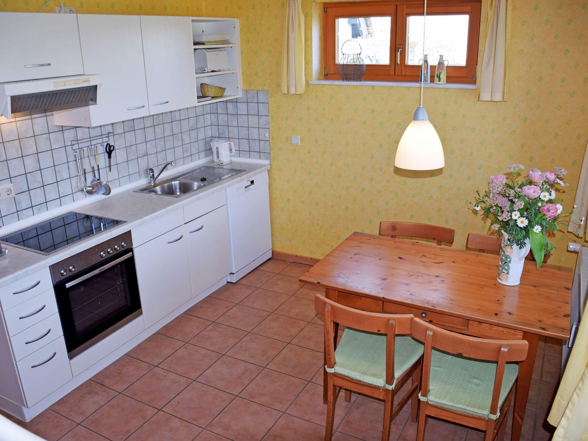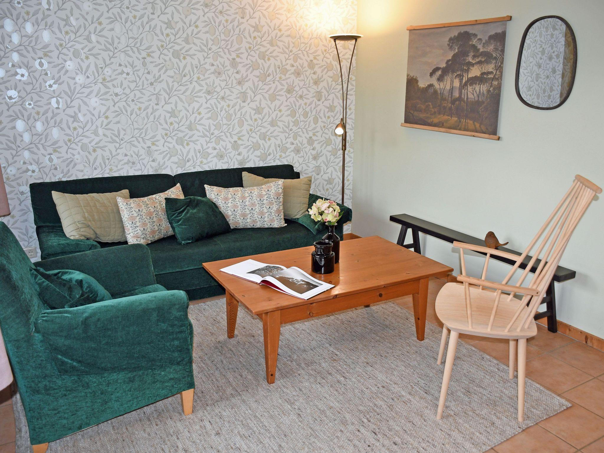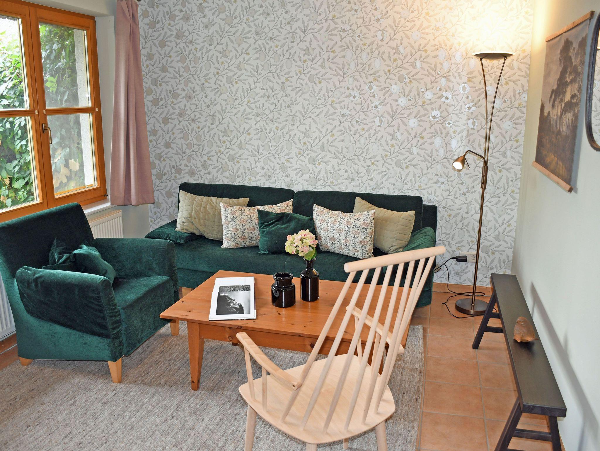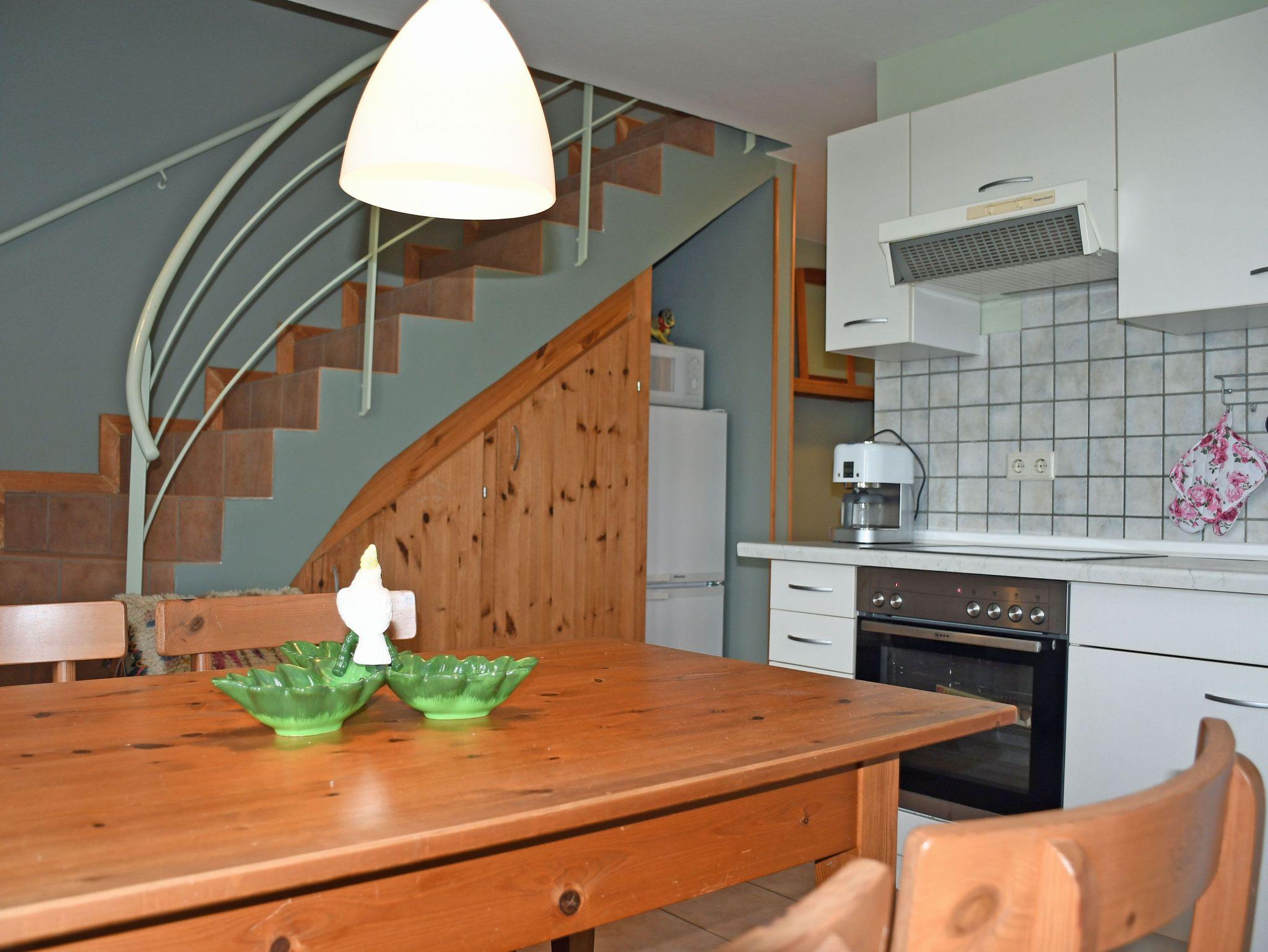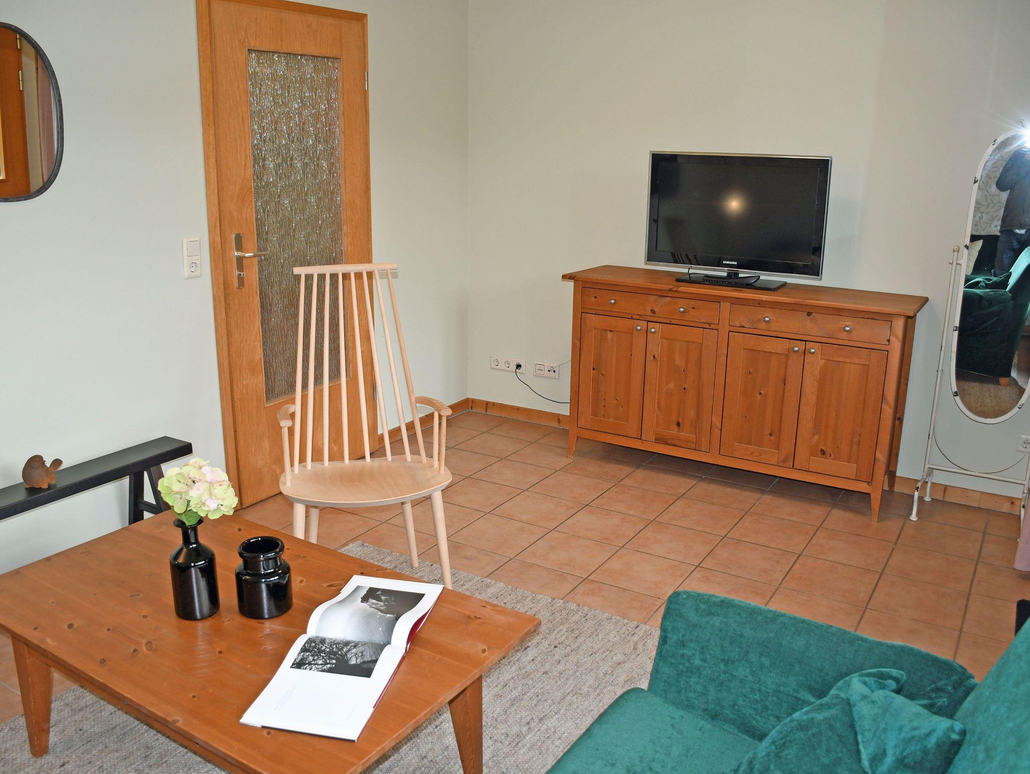 Unsere Wohnung bietet Platz für max. 4 Erwachsene. Das Wohnzimmer verfügt über eine Schlafcouch und ein Flachbild-TV. Hier steht auch ein Esstisch mit Stühlen. Die offene Küche ist komplett eingerichtet mit Mikrowelle, Geschirrspüler, Toaster, Wasserkocher, Kaffeemaschine sowie einem Herd. Ihre Terrasse zum Garten können Sie vom Zugang / Wohnzimmer betreten. Grillen ist auf dem Grundstück nicht gestattet.