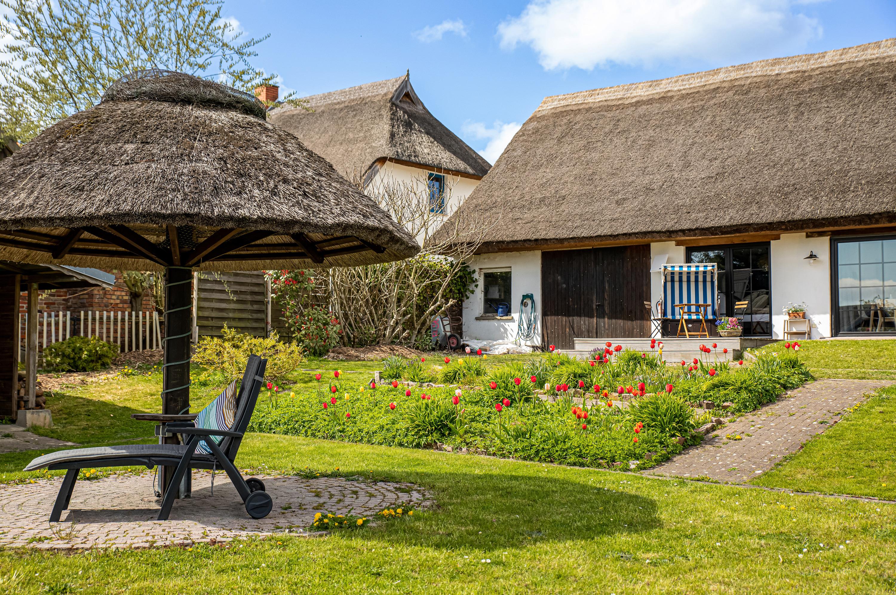 Ein weiteres Plus ist das ca 1000qm große und gepflegte Grundstück. Neben einer privaten Sauna (separat buchbar) und einer Terrasse mit Strandkorb, punktet das Grundstück mit einer weiteren, überdachten Terrasse. So können Sie entweder Schatten im Hochsommer, oder Schutz bei Witterung suchen und sind trotzdem inmitten der Natur.