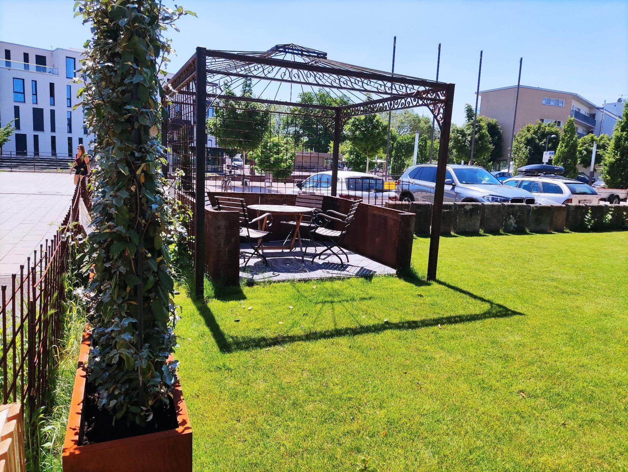 Sie liegen zentral an einem ruhigen Stadtplatz und sind Teil eines Ensembles aus historischem Wassertürmchen und Neubau. Dieser neue Holzbau ist in ökologischer Massivholzbauweise erstellt. Besonderes Augenmerk haben wir auf die Verwendung baubiologisch einwandfreier Baustoffe gelegt. Das begrünte Flachdach wirkt klimatisierend, so dass wir bislang auf eine aufwendige Klimatechnik verzichten konnten. Die gewählte Baukonstruktion schirmt das Gebäude gegen gesundheitsschädliche Strahlungen wie Radon und elektromagnetische Wellen ab. Nach ausgedehnten Wanderungen im Pfälzer Wald finden unsere Gäste in den naturbelassenen Holzinnenräumen eine wohlige Atmosphäre. Die barrierefreie, schwellenlose Gestaltung der Ferienanlage machen den Aufenthalt für Senioren genauso interessant wie für sportlich aktive junge Feriengäste.