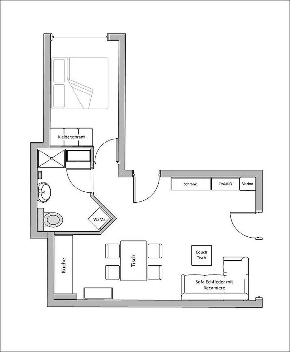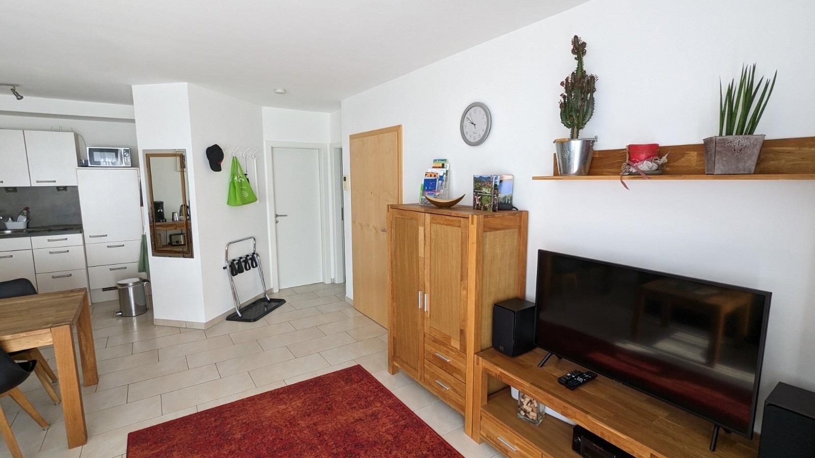 Das Ledersofa bietet eine weitere Schlafgelegenheit für maximal zwei Kinder. TV und HiFi Anlage, gratis Internetzugang per WLAN. Der allgemeine Innenhof liegt direkt vor der Wohnzimmertüre.