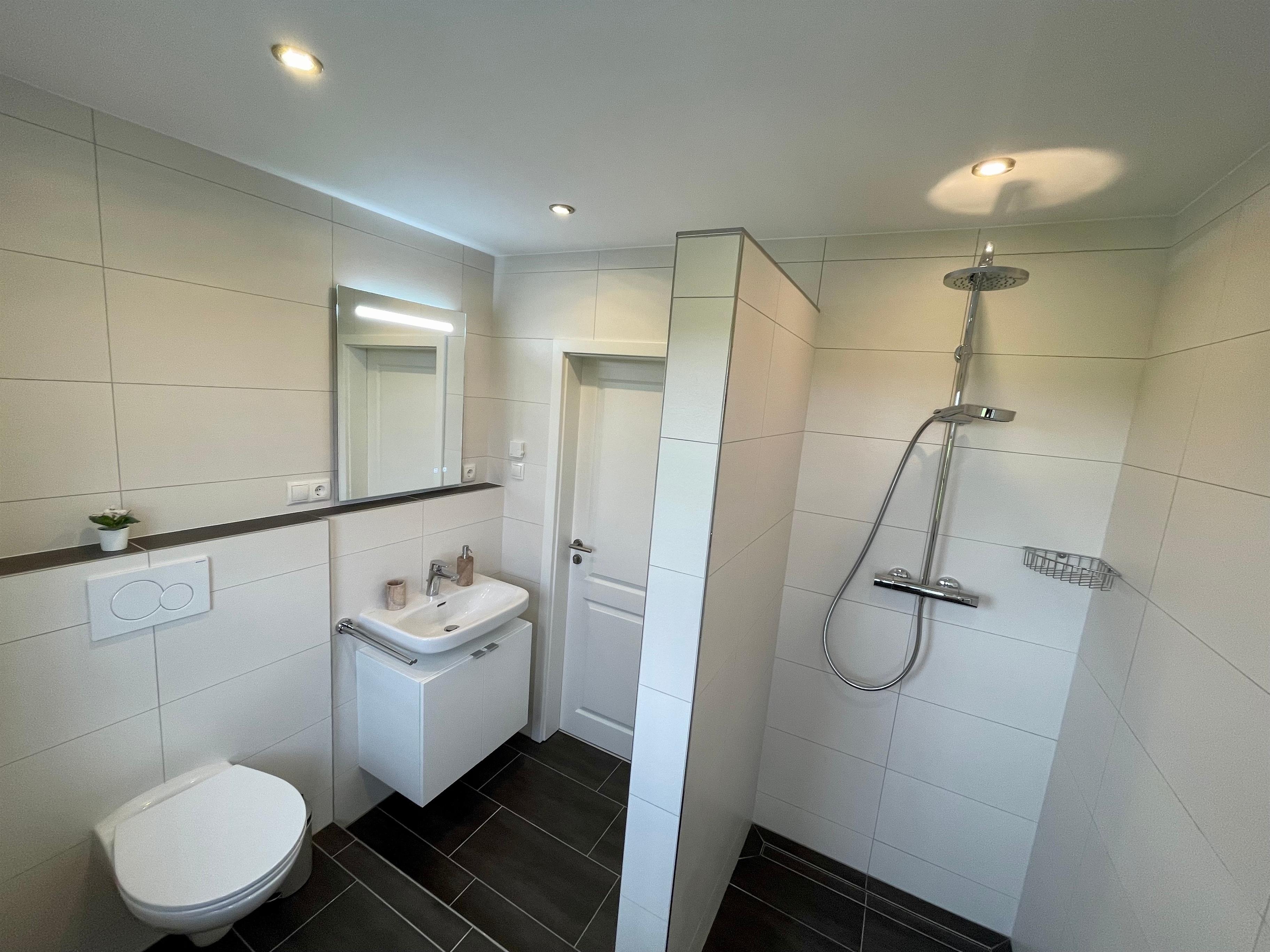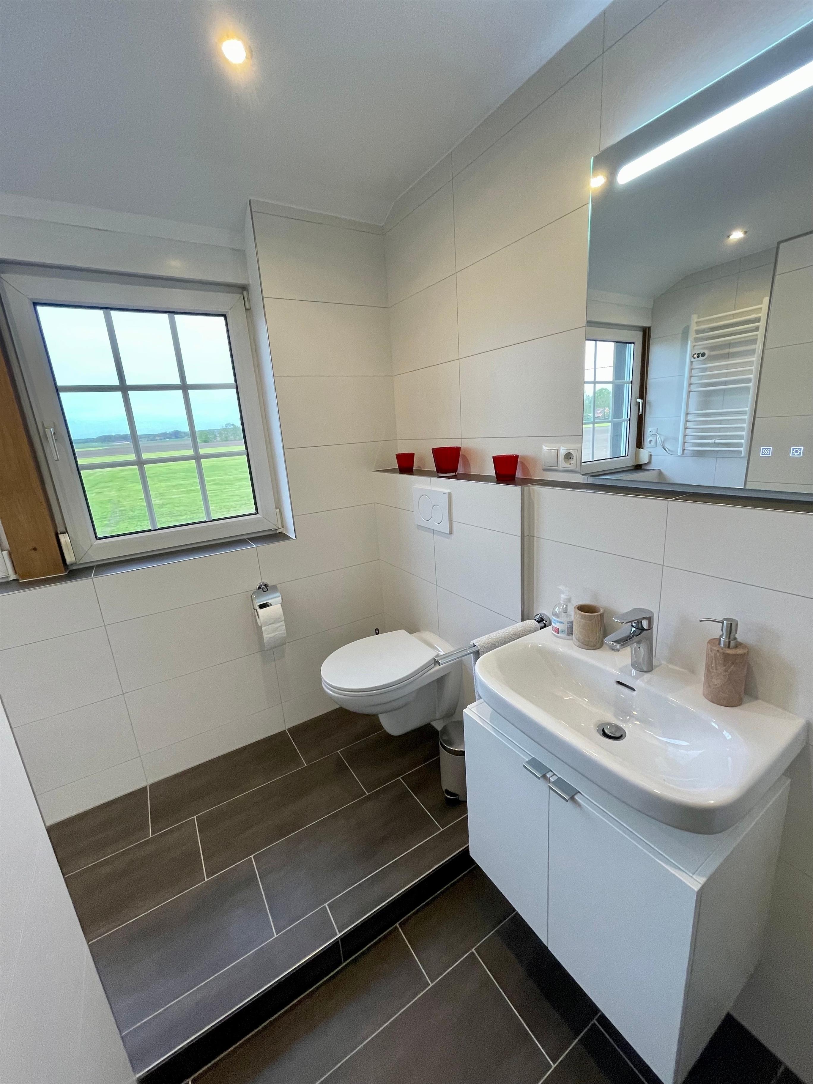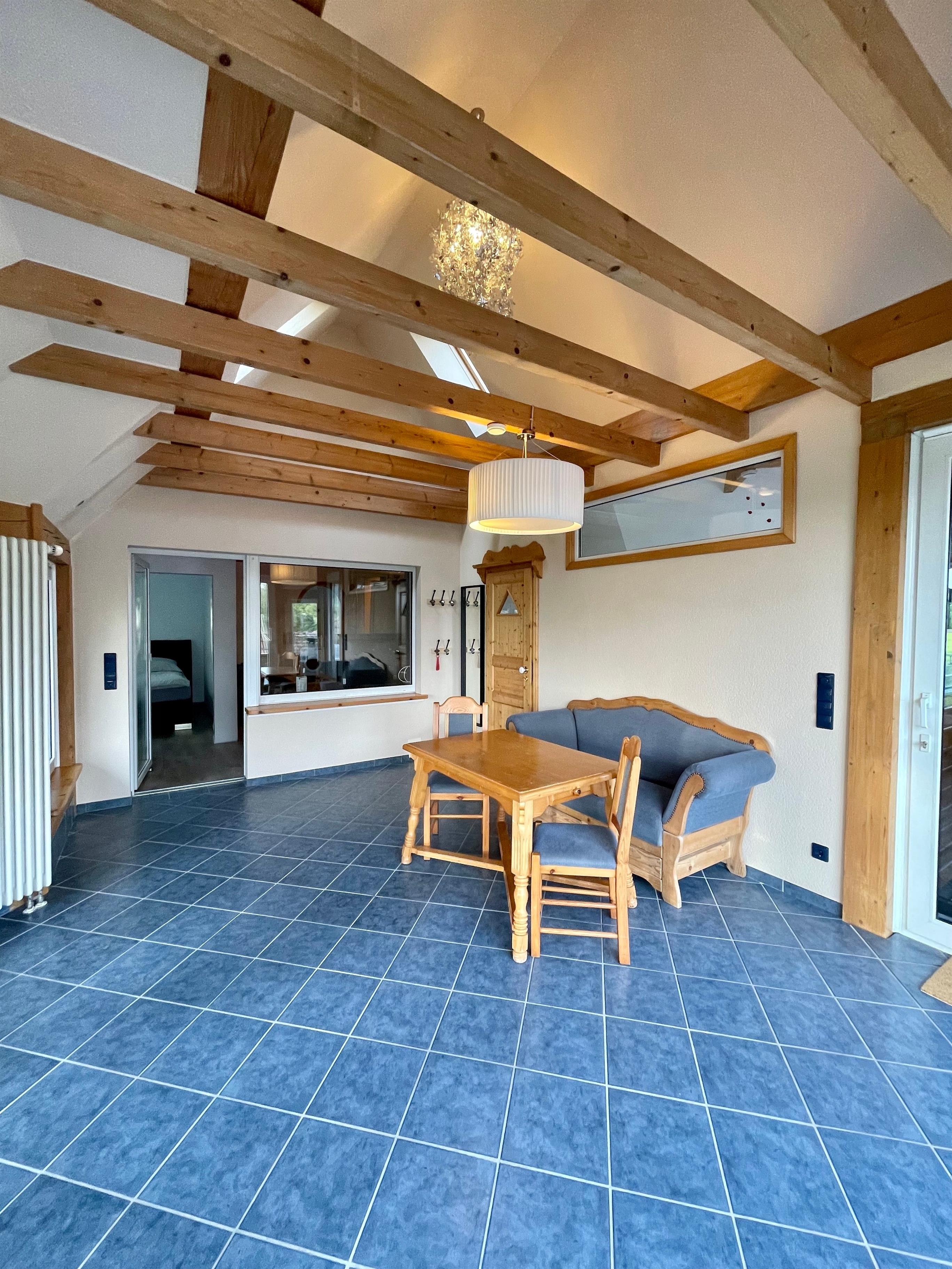Die Ferienwohnung befindet sich im Obergeschoss und verfügt auch über eine große Terrasse mit Sonnenliegen und Gartenmöbeln, auf denen man den Tag im Freien genießen kann. Ein Parkplatz steht den Gästen ebenfalls zur Verfügung. Es besteht auch die Möglichkeit die Fahrräder unterzustellen und E-Bikes zu laden.