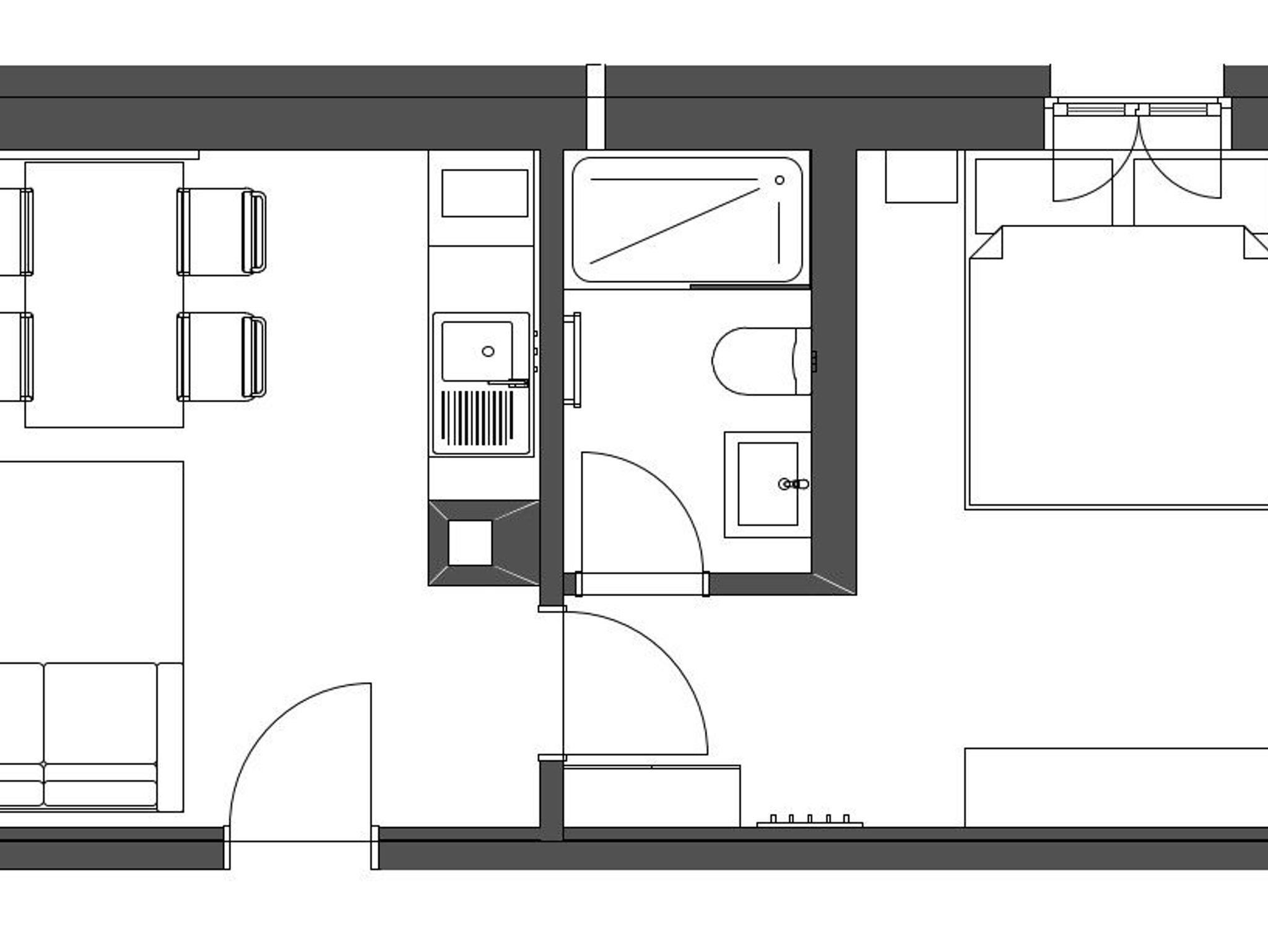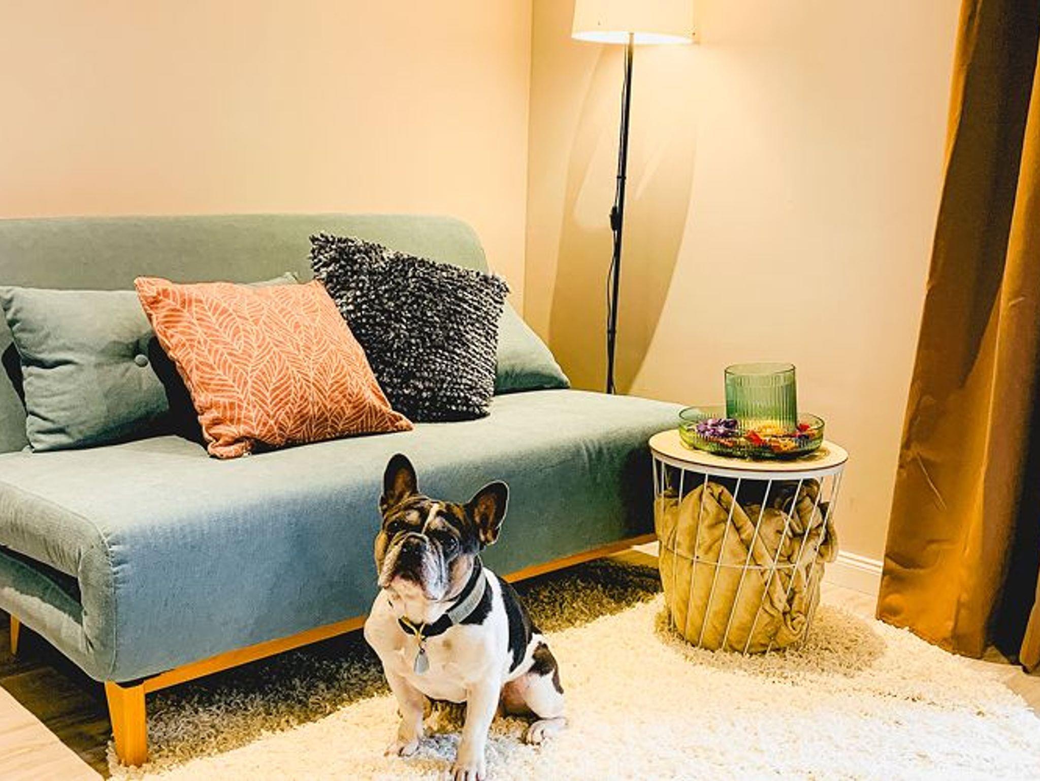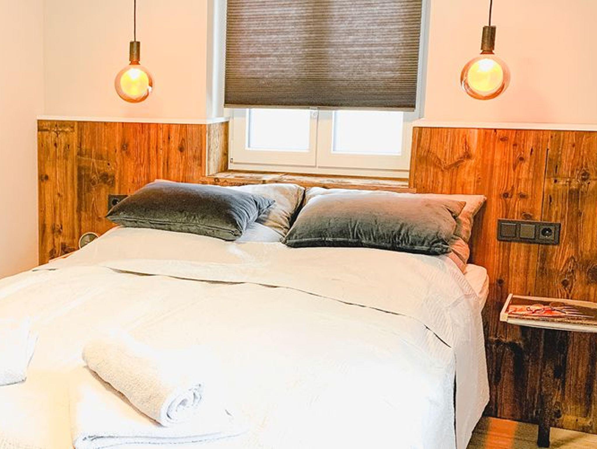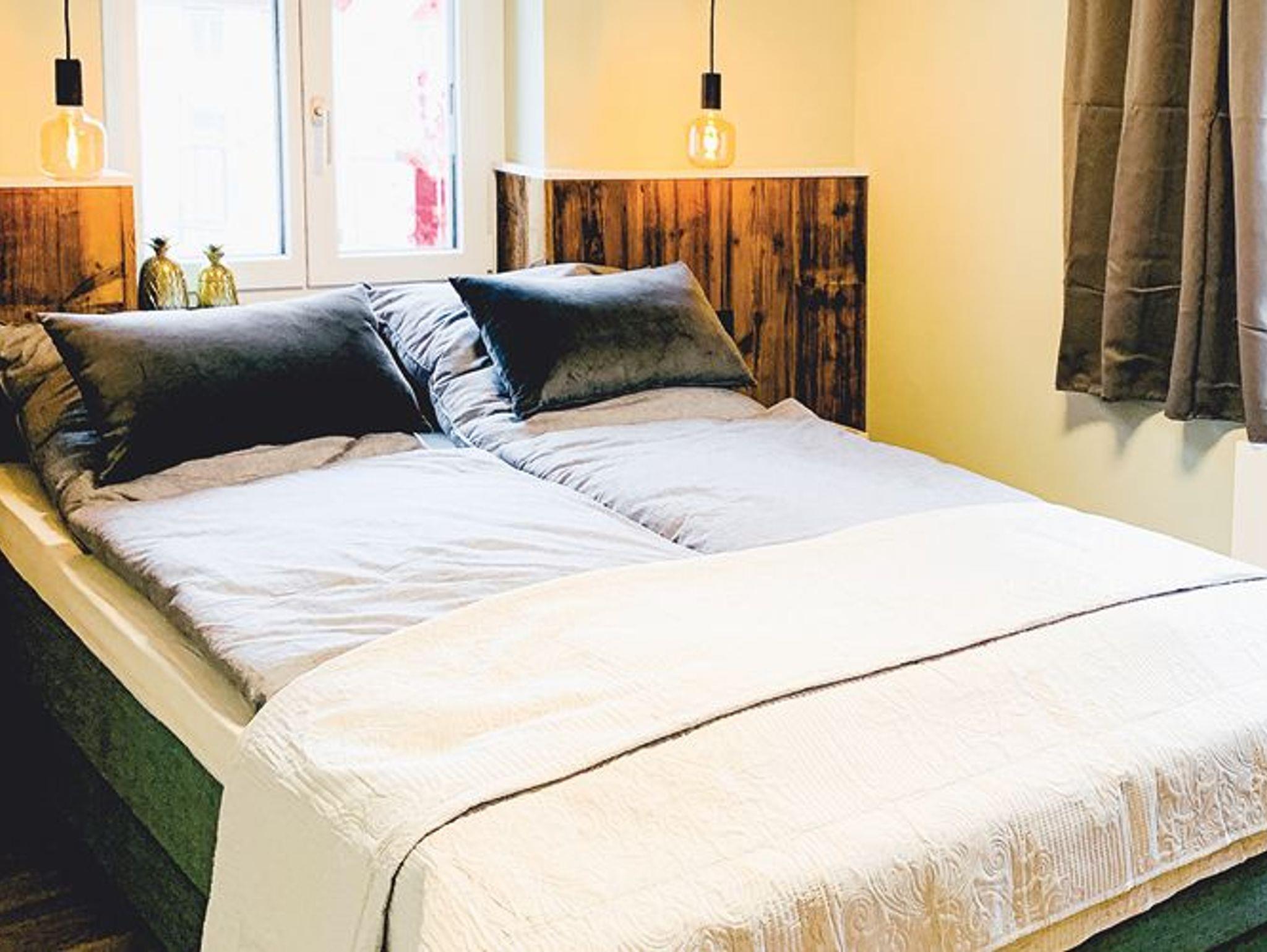 Auf ca. 33 m² erwartet euch ein individuell eingerichtetes Apartment mit einem Schlafzimmer mit Boxspringbett in Queensize Größe (160x200 cm) und einem eigenen Ess- und Wohnbereich. Die Küchenzeile verfügt über zwei Induktionskochfelder, einer Spüle und einem Kühlschrank. Der dazugehörige Essplatz ist mit einem Küchentisch und vier Stühlen ausgestattet. Das Bad verfügt über eine Dusche, flauschige Handtücher und Fön. Eine weitere Schlafmöglichkeit bietet euch das ausklappbare Sofa (Größe: 140x192 cm) im Wohnbereich. Das Apartment verfügt über einen Smart-TV für Streaming und kostenfreies WLAN.