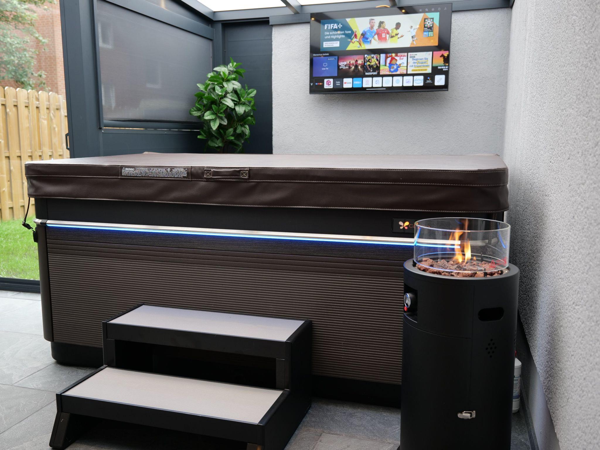 On the ground floor is the heart of the house, the cosy, modern living room with access to the garden, terrace and open-plan dining room. Our conservatory with whirlpool offers you the perfect place to relax, with the option of enjoying a home cinema experience at the same time thanks to the adjoining 55-inch Smart TV.
