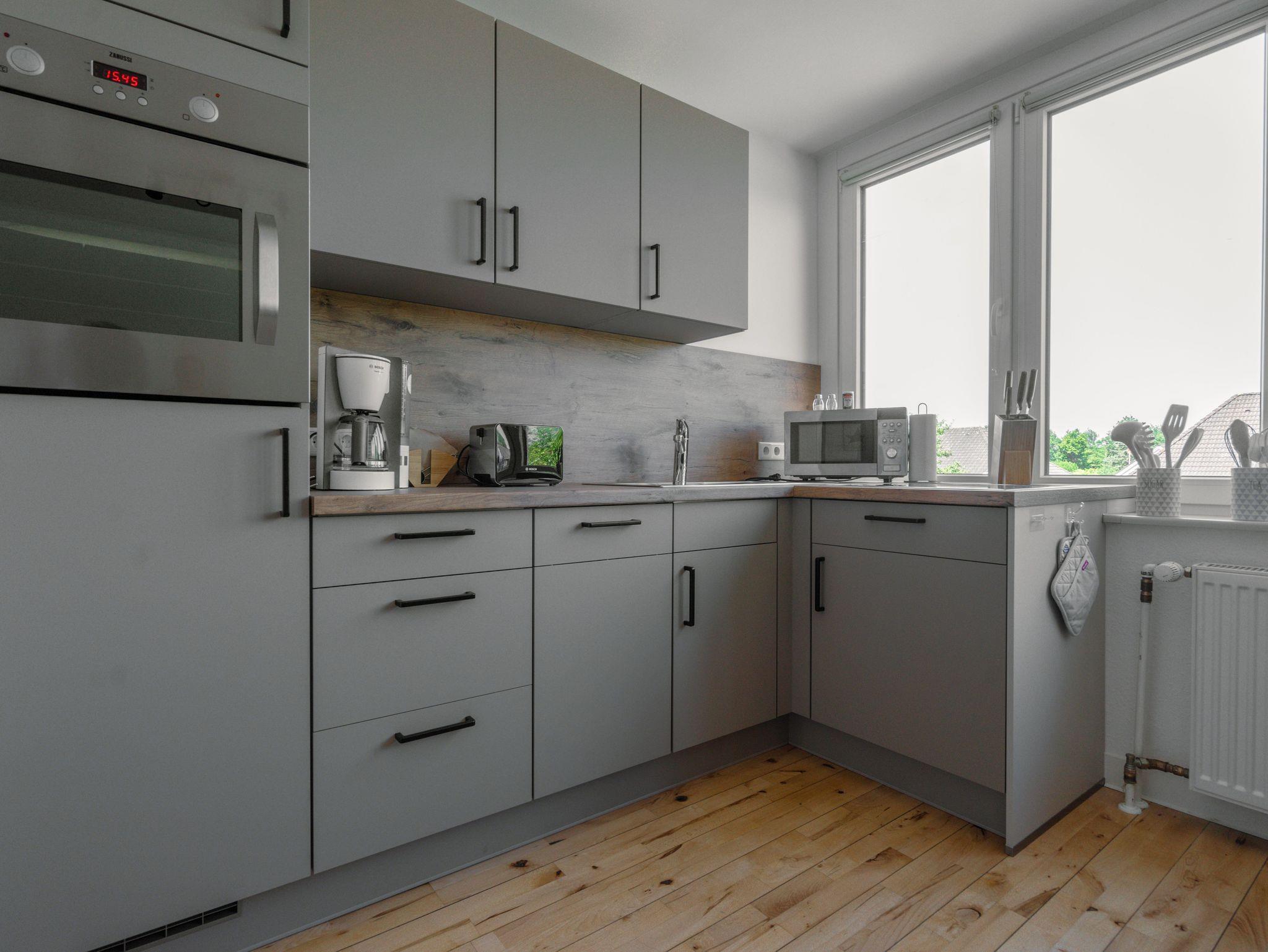 Unsere Fewo Blinkfuer hat gemütliches Wohnzimmer mit einer Eckcouch (zur Schlafcouch ausziehbar), TV, WLAN-Radio und WLAN. Die Küche verfügt über eine EBK mit E-Herd, Mikrowelle, Kaffeemaschine, Wasserkocher, Toaster sowie einen Backofen. Das Bad ist mit einer Dusche, Waschtisch und WC ausgestattet.
