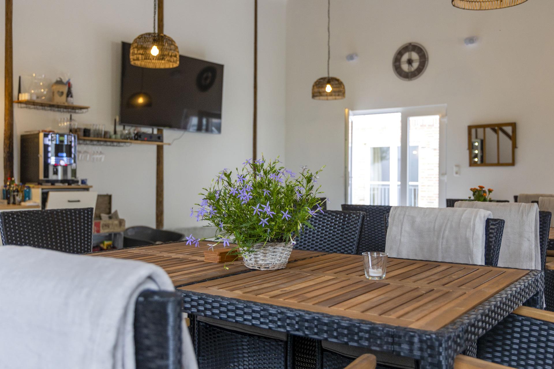 Unser Außengelände ist ebenso einladend gestaltet: Grillplätze laden zu gemütlichen Abenden im Freien ein, während Mini Shettys und Ziegen auf den Weiden grasen. Für Ihre Vierbeiner gibt es einen eingezäunten Hundefreilauf neben dem Grillplatz, sodass auch sie einen erholsamen Tag genießen können. Sollte das Wetter einmal nicht mitspielen, bietet unsere Aufenthaltshalle genügend Platz für unsere Feriengäste. Hier können Sie Snacks sowie Kalt- und Heißgetränke erwerben, und für die kleinen Besucher gibt es eine liebevoll eingerichtete Spielecke.