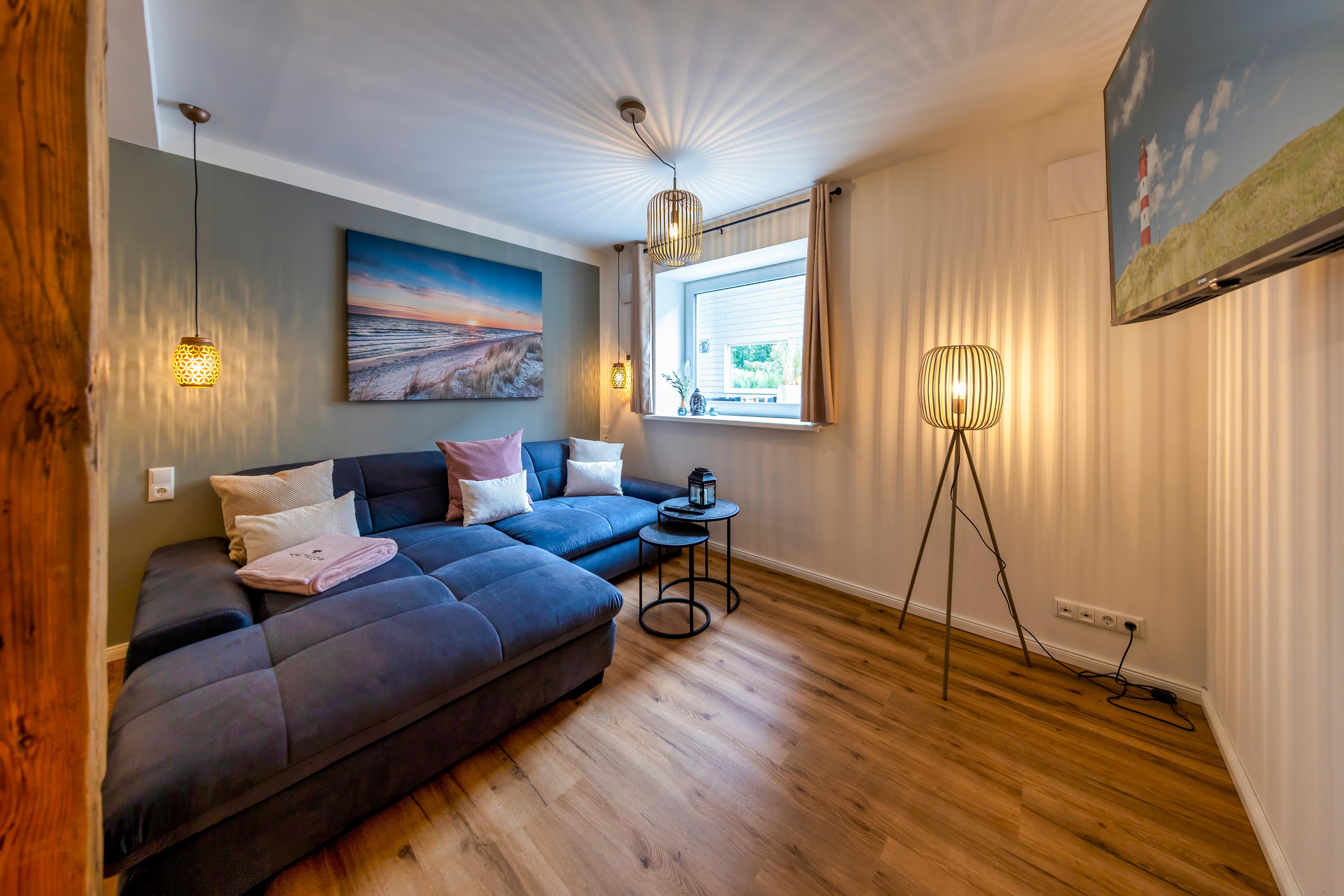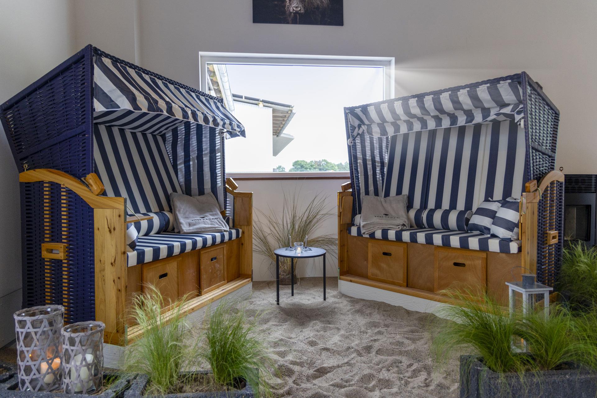 Eine Fußbodenheizung sorgt im ganzen Haus für wohlige Wärme und eine Klimaanlage rundet das ganze ab. In den stilvollen Bädern finden Sie bodengleiche Duschen und Infrarotkabinen, die nach einem erfrischenden Tag an der Nordsee zum Aufwärmen einladen. Genießen Sie ein Glas Wein bei Kerzenschein im großen Whirlpool und entspannen Sie anschließend im bequemen Boxspringbett, vielleicht mit einem Film auf dem großen Flachbildfernseher.