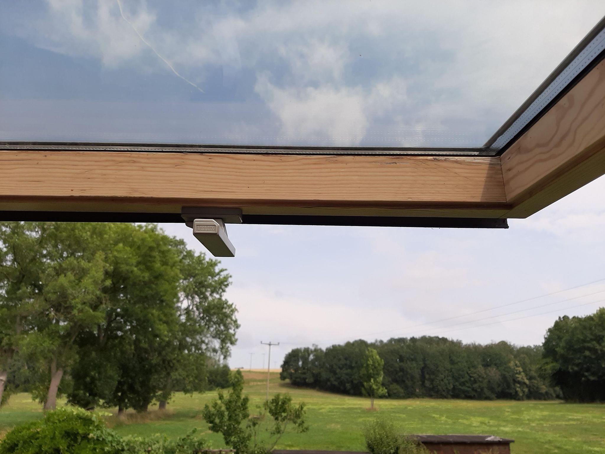 Das Badezimmer mit 2 Dachfenstern verfügt über Dusche, Eckbadewanne, WC, Fön und Kosmetikspiegel, Waschmaschine und Trockner.